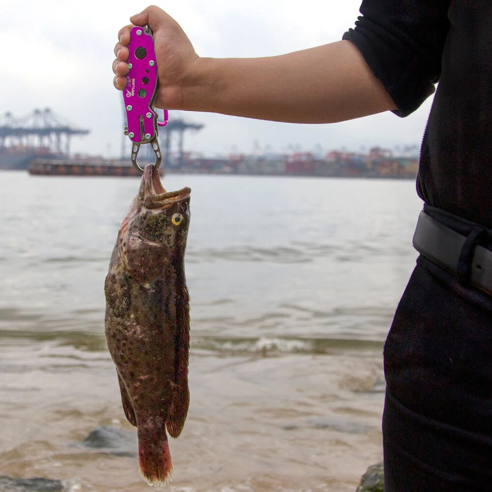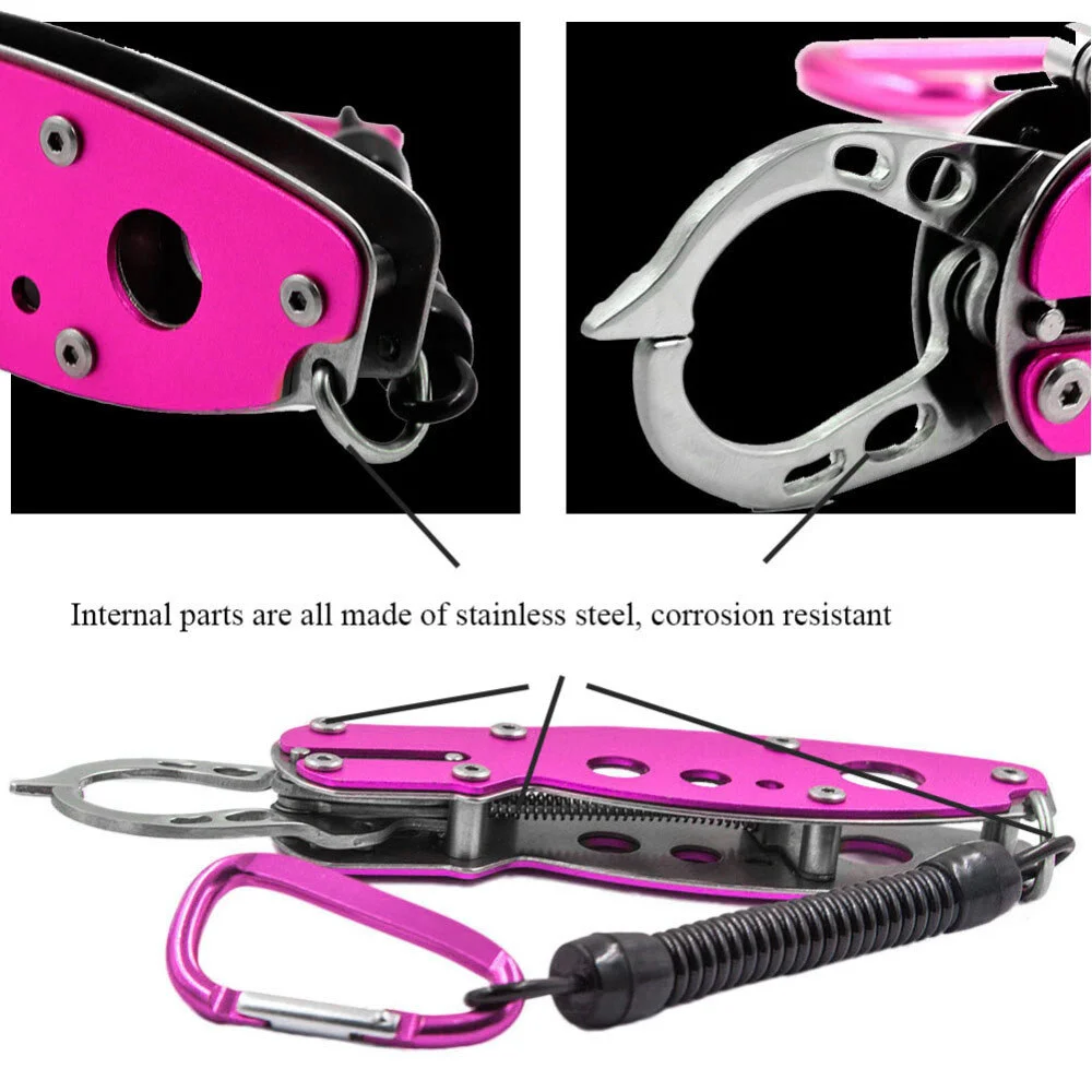 SANLIKE-clip multifuncional de aluminio para pesca, agarre de labio, soporte para cebo, Clip con cordón de prevención de pérdidas, accesorios de herramientas de pesca
