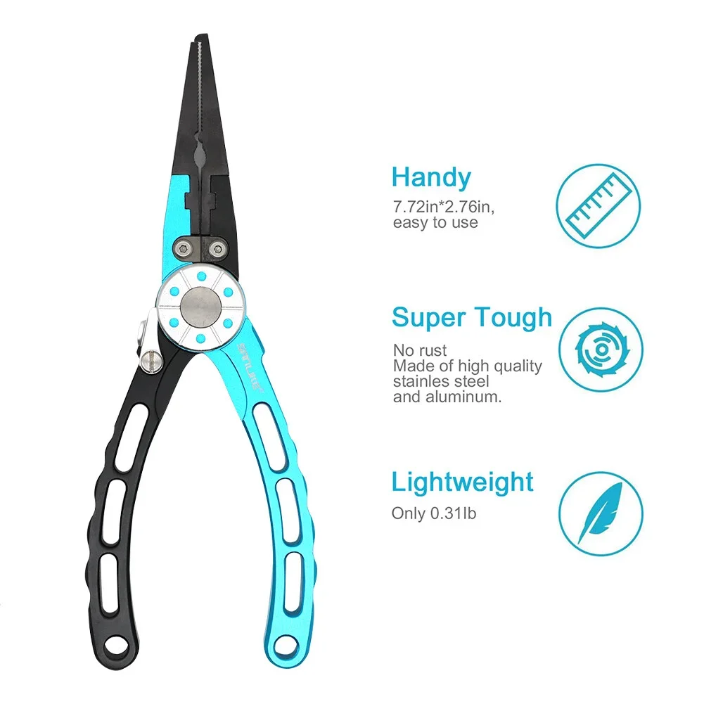 SANLIKE Aluminium Multifunctional Fishing Pliers Portable with Cord Anti Rust Hook Remover Fishing Line Scissors Fishing Tools
