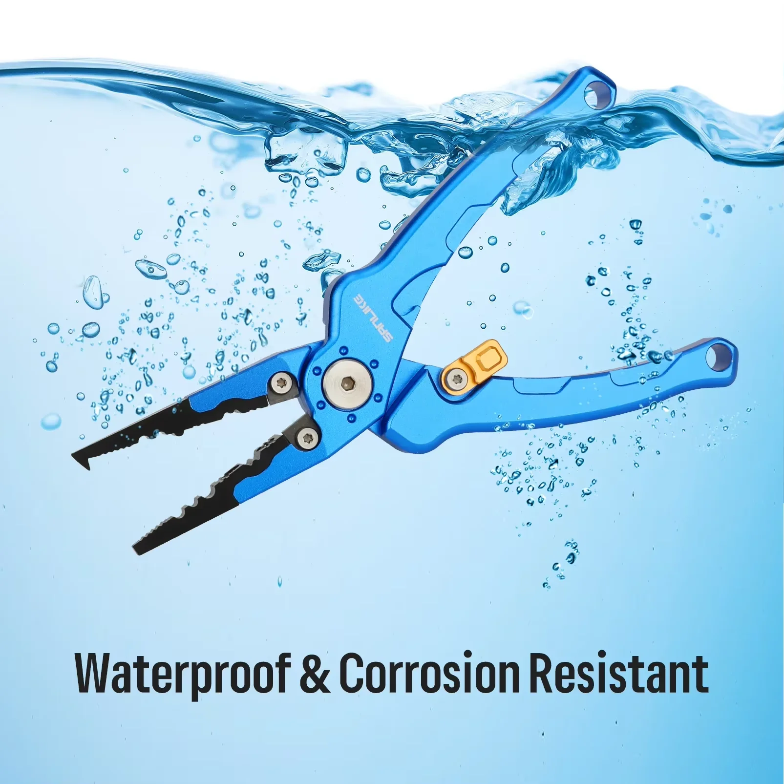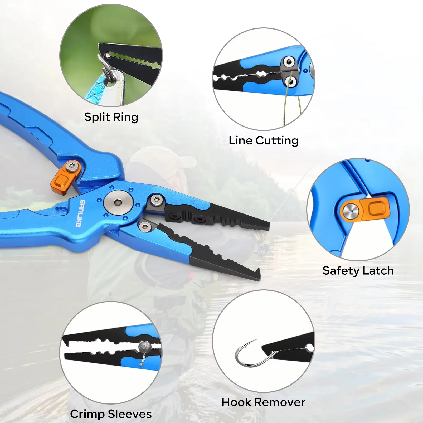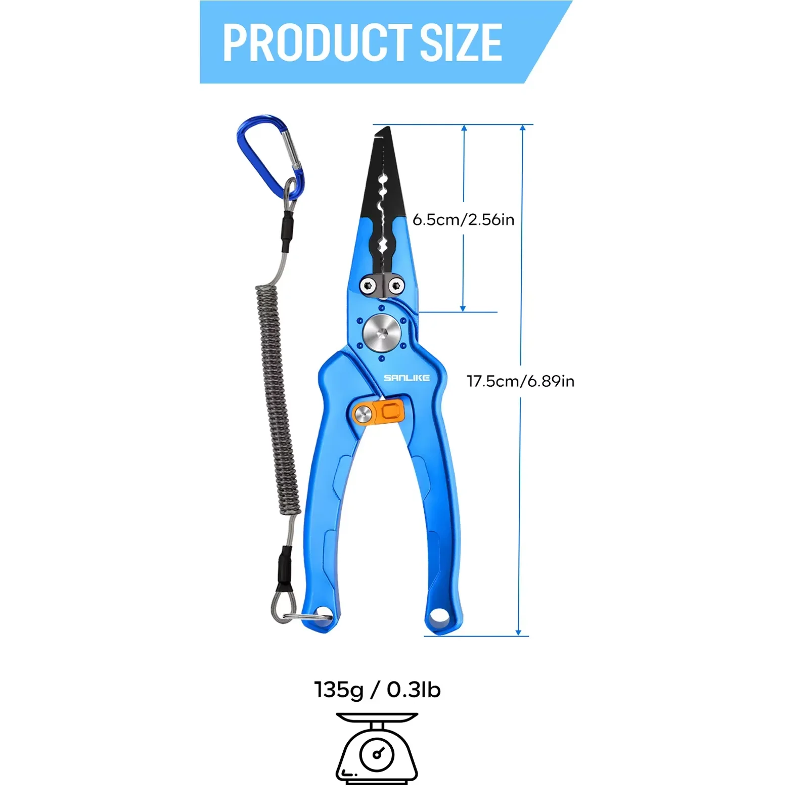 Alicates para peces SANLIKE, aleación de aluminio antioxidante, multifuncional, portátil con cordón con bolsa especial, herramienta de pesca para quitar anzuelos
