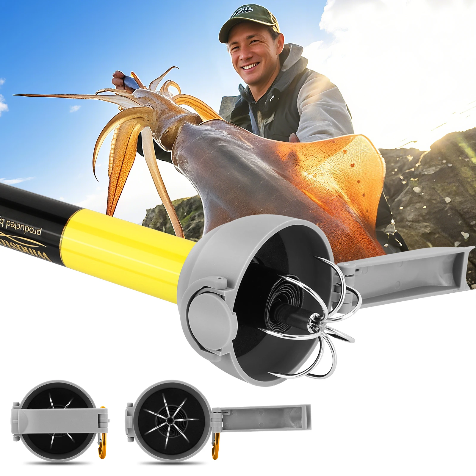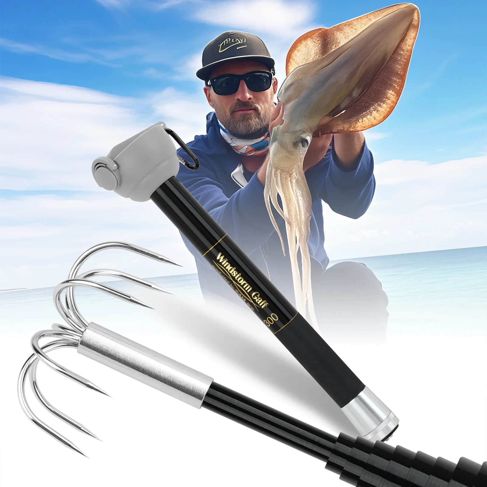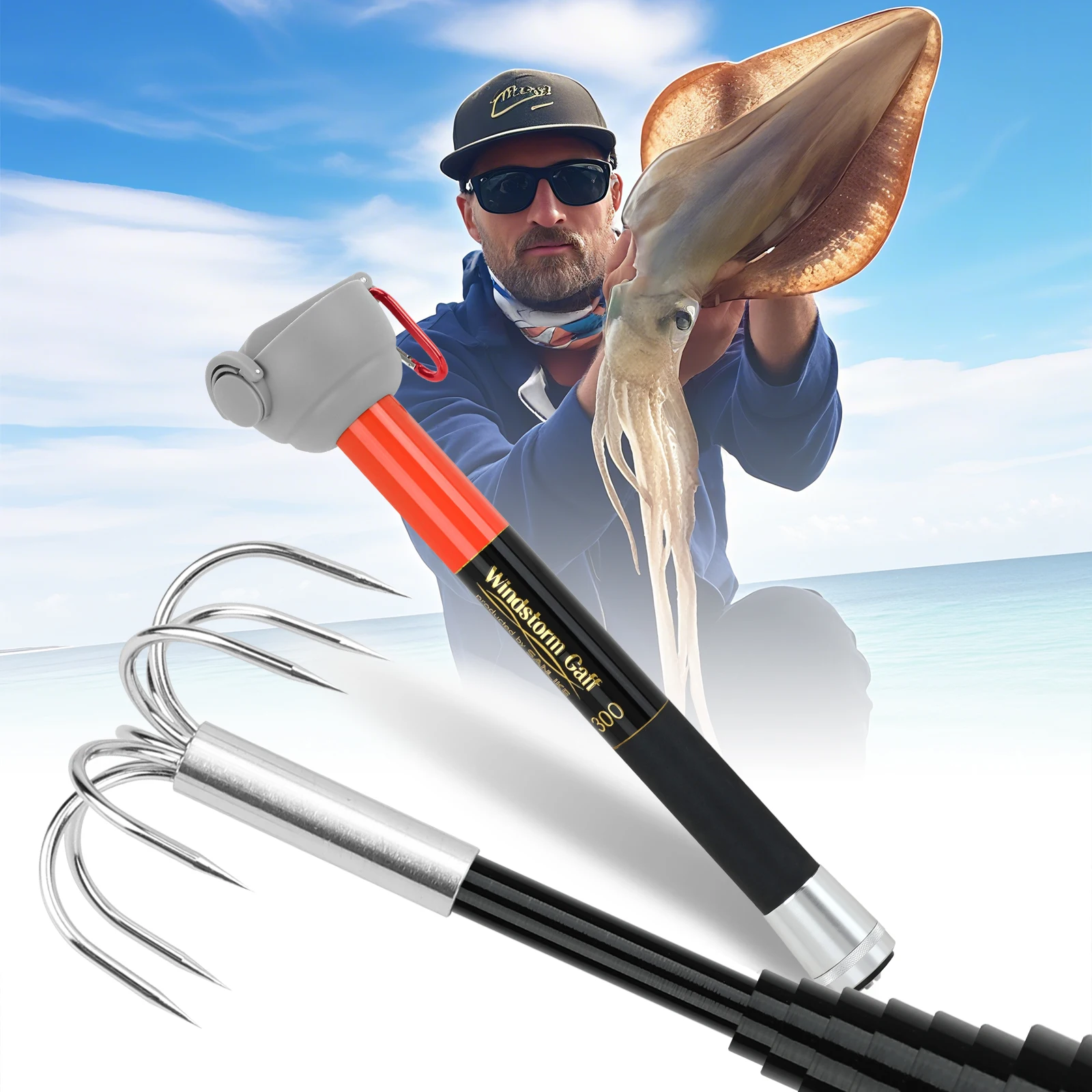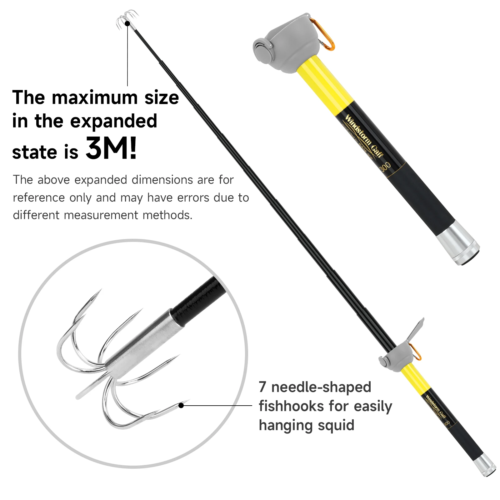 SANLIKE, anzuelo de calamar de acero inoxidable con 7 garras, caña telescópica de fibra de vidrio de 3m y 11 secciones con Protector EVA, pesca en el mar ligera