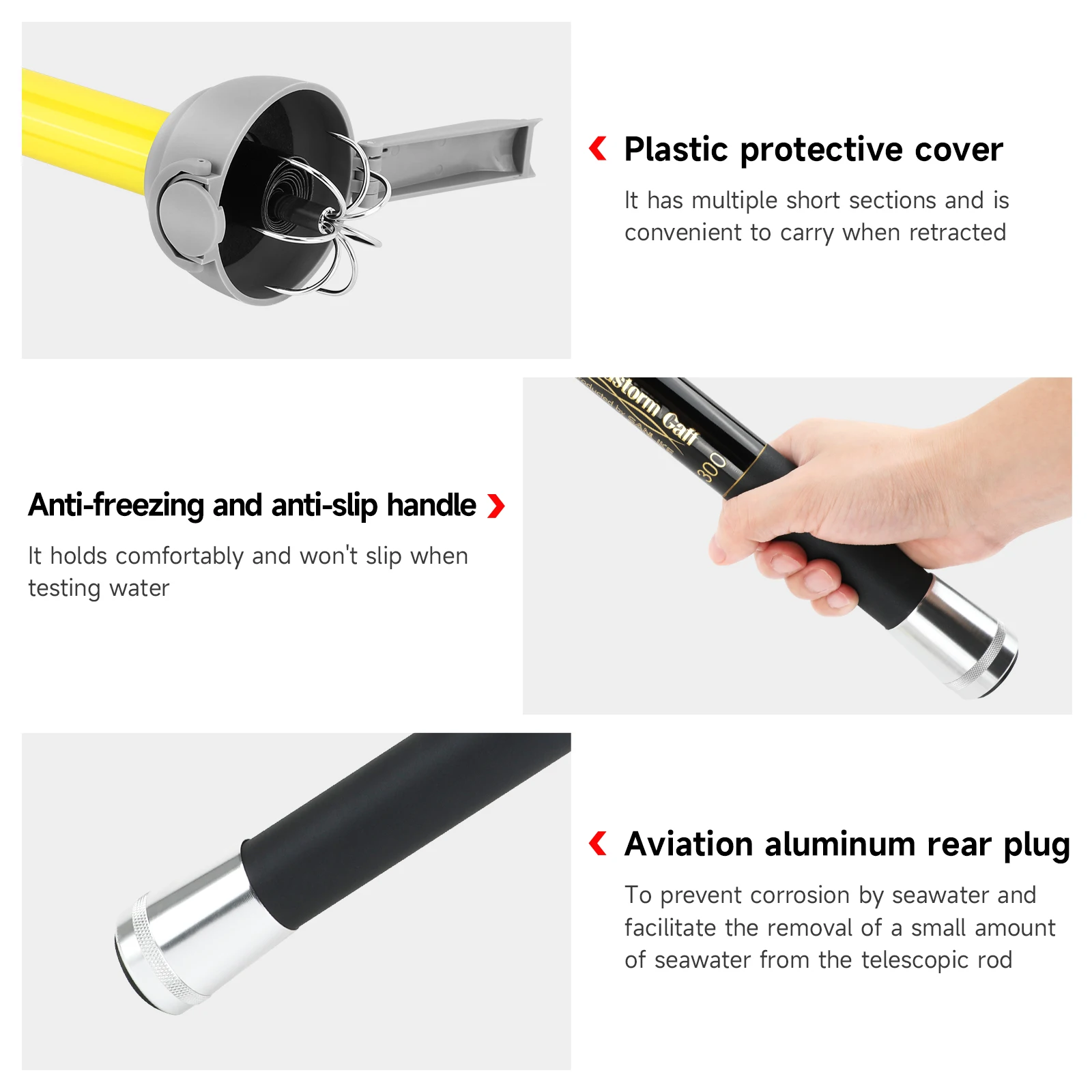 Varilla de fibra de vidrio + tapón trasero de aluminio de aviación, que pesa solo 359 g, resistente a la corrosión por niebla salina; El mango antideslizante esmerilado es cómodo de sostener y es más estable para sostener en ambientes húmedos.