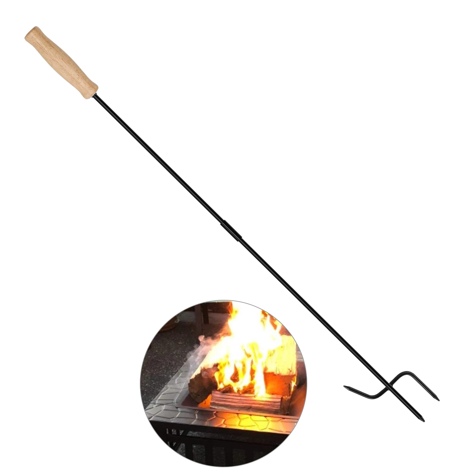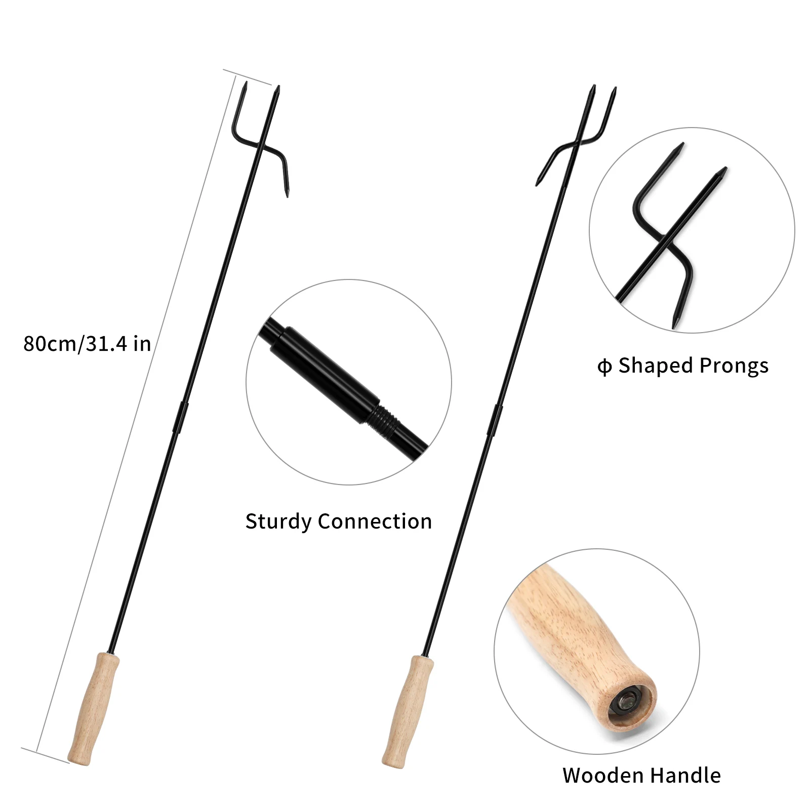 SANLIKE-gancho para fuego portátil extraíble de 2 secciones, herramienta de póquer para chimenea de alta resistencia, gancho para fuego de madera y hierro de 80cm, herramientas para acampar al aire libre