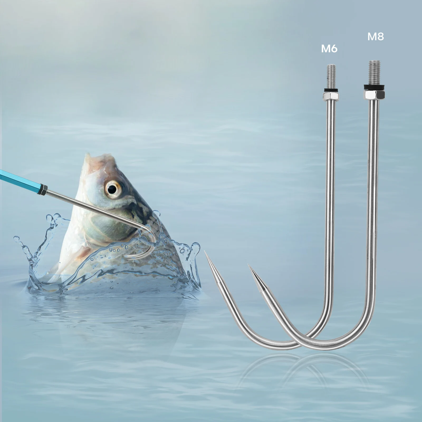 SANLIKE M6/M8 Gaff de pesca gancho de lanza de pesca de acero inoxidable con cubierta protectora para accesorios de pesca de agua dulce y salada