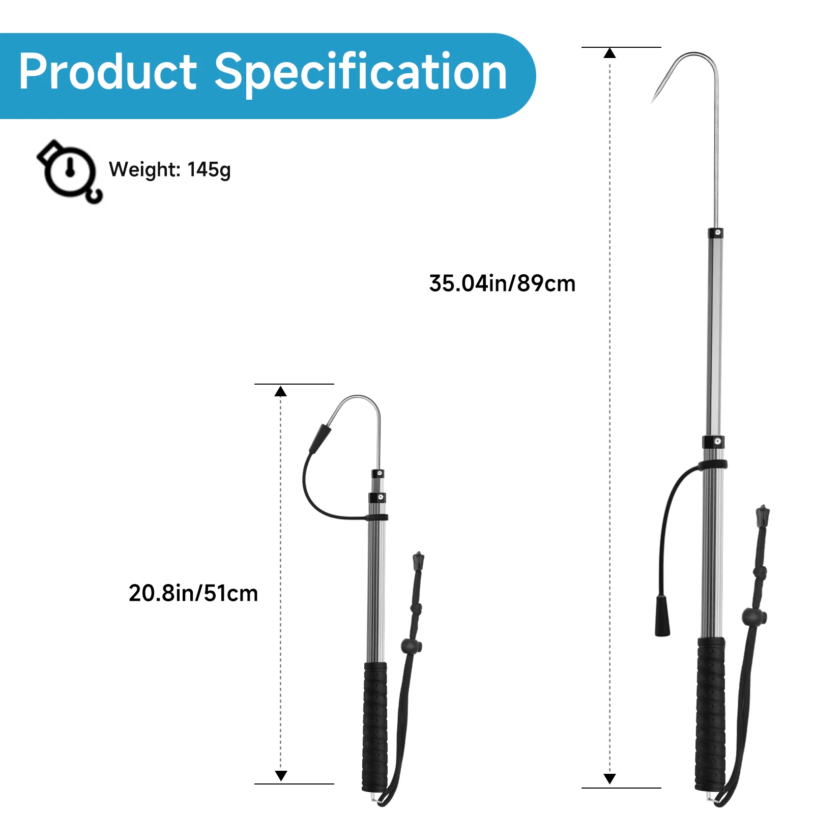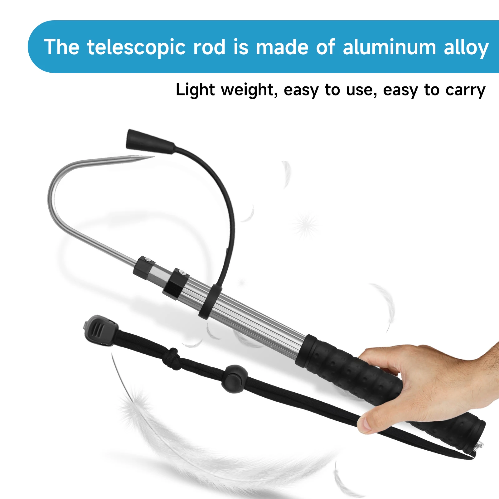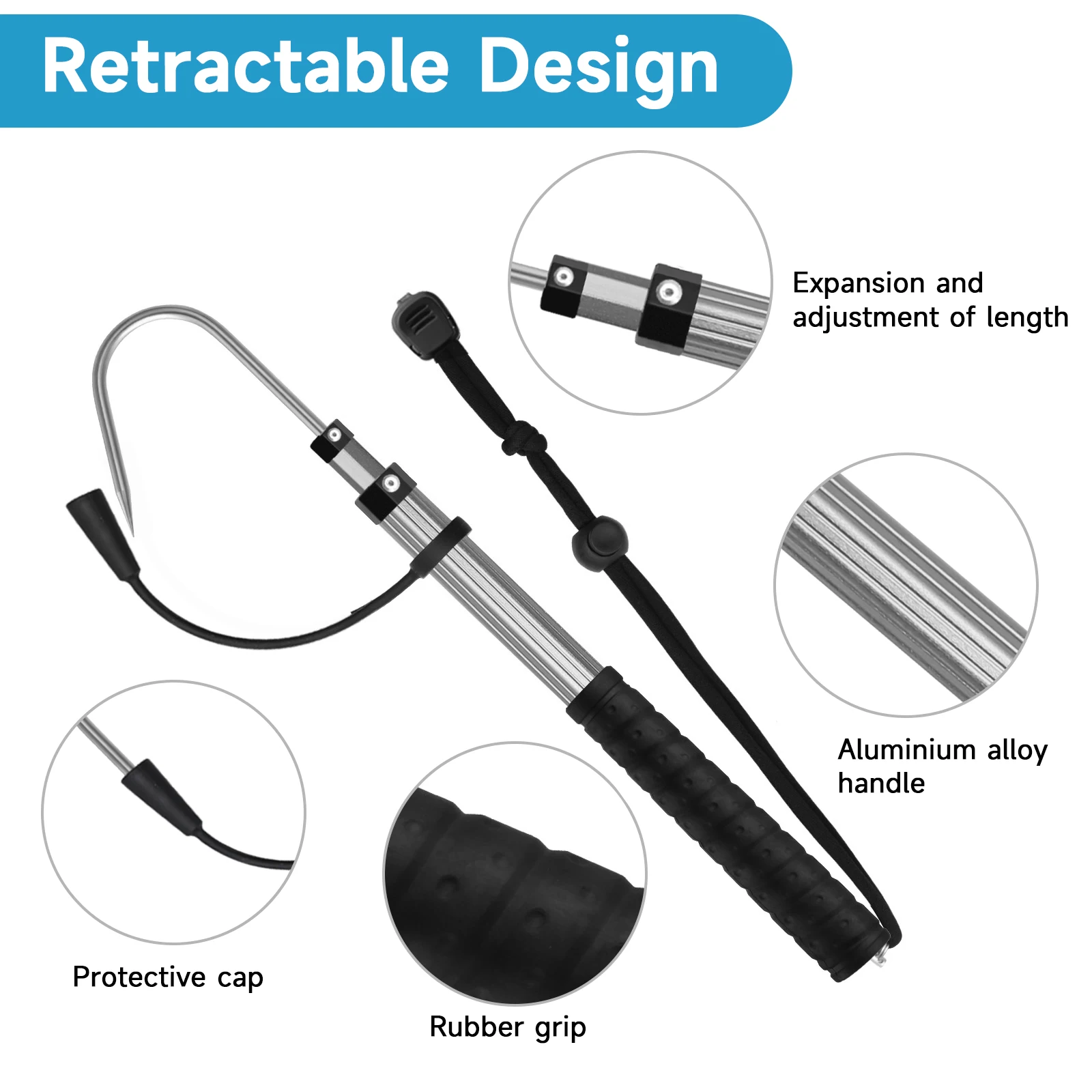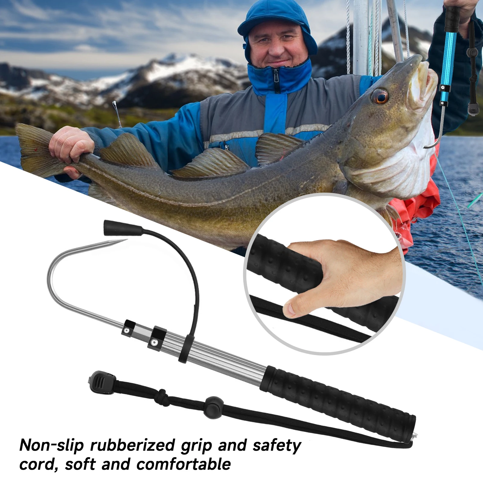 SANLIKE, anzuelo telescópico de pesca de 90cm, gancho de acero inoxidable, mango de goma antideslizante, poste de aluminio ligero para agua salada