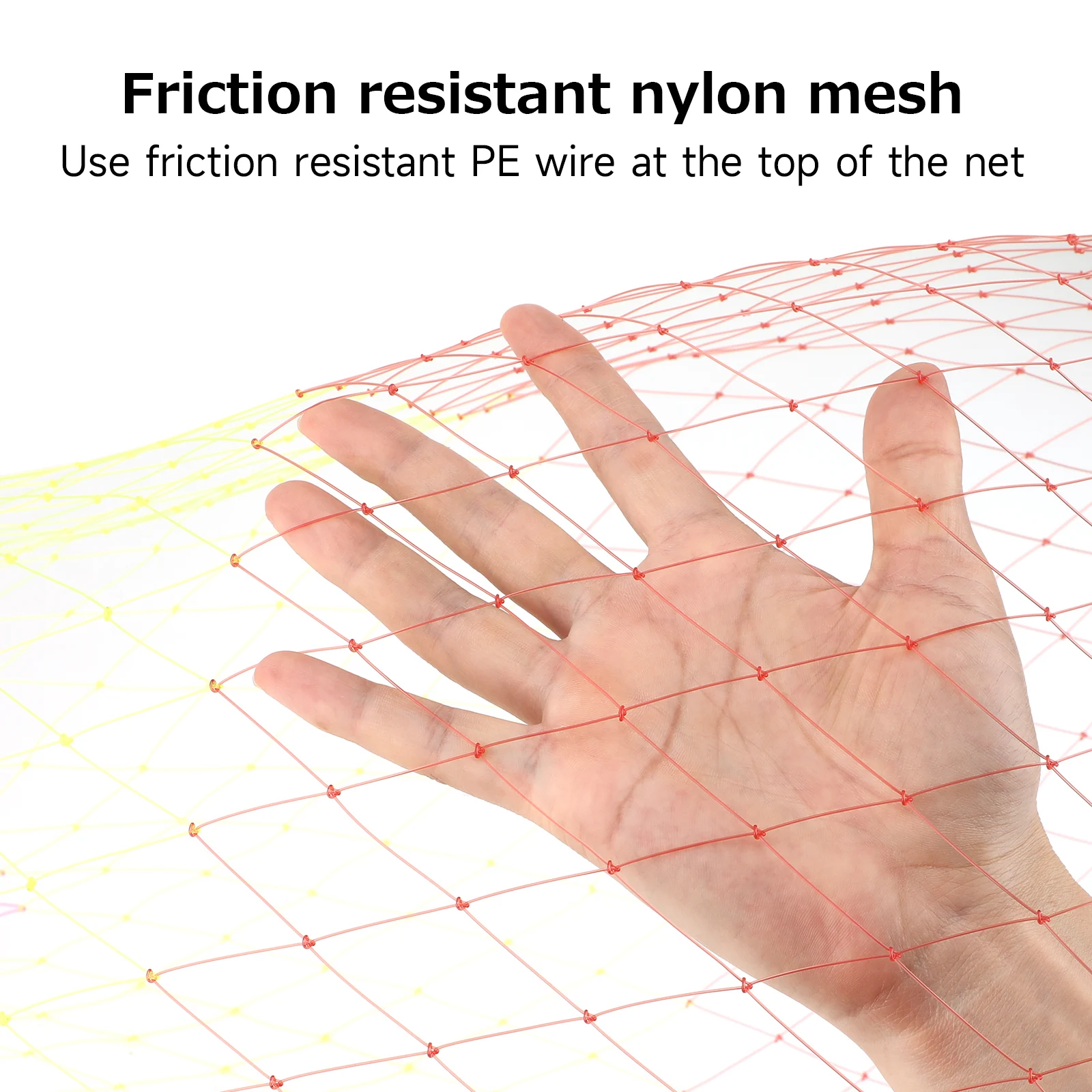 1. Red de pesca: La profundidad de la red es de 60 cm, ¡y los peces grandes son fáciles de atrapar! La parte de malla está hecha de excelentes nanomateriales repelentes al agua y no sucios, y no se vuelve pesada debido a la adhesión del agua de mar. Puede enjuagar el suelo y lijar con agua.