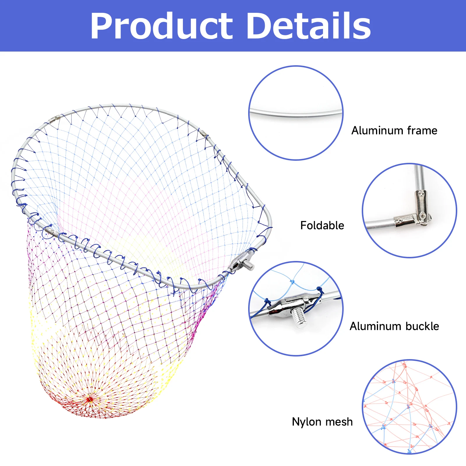 SANLIKE, cabeza de red de pesca, Marco extensible plegable de aleación de aluminio, Red de inmersión de nailon, tornillo de 12mm, accesorios para equipos de pesca