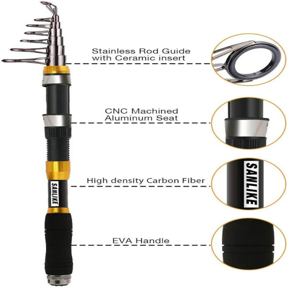 SANLIKE caña de pescar retráctil de carbono, cebo oscilante portátil ultraligero para herramientas de caña de pescar de agua salada y dulce