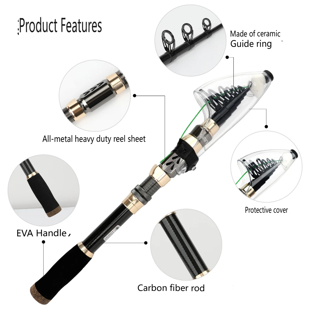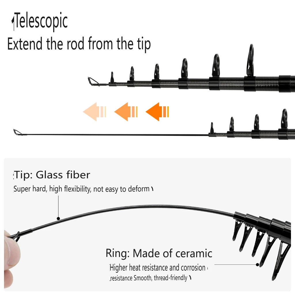 Cuchillas de pescar portátiles SANLIKE de 1,8 m-3 m, cañas telescópicas de cebo de fibra de carbono, herramientas de caña de pescar de agua salada y dulce
