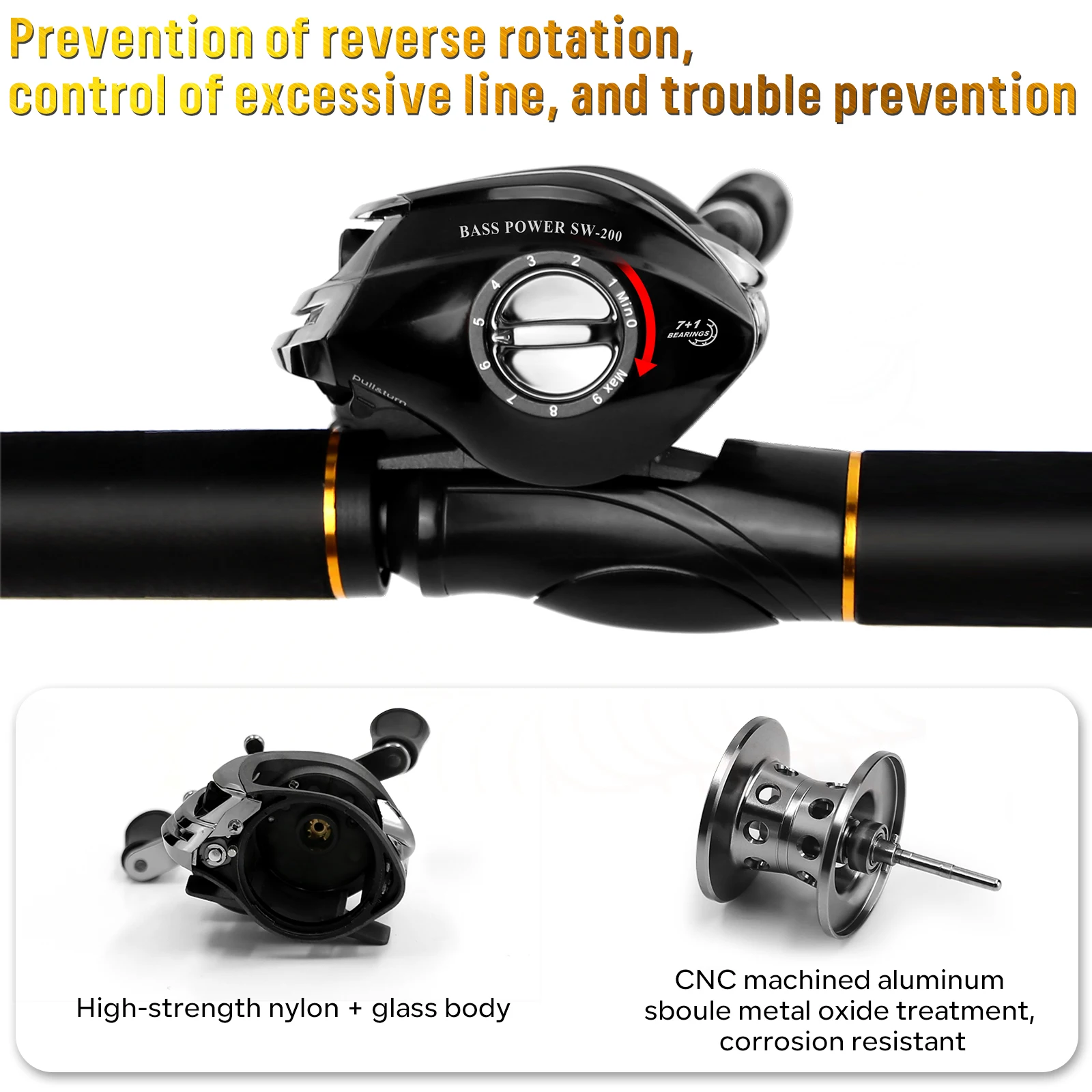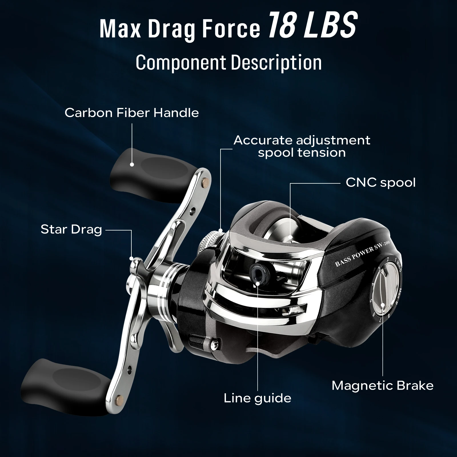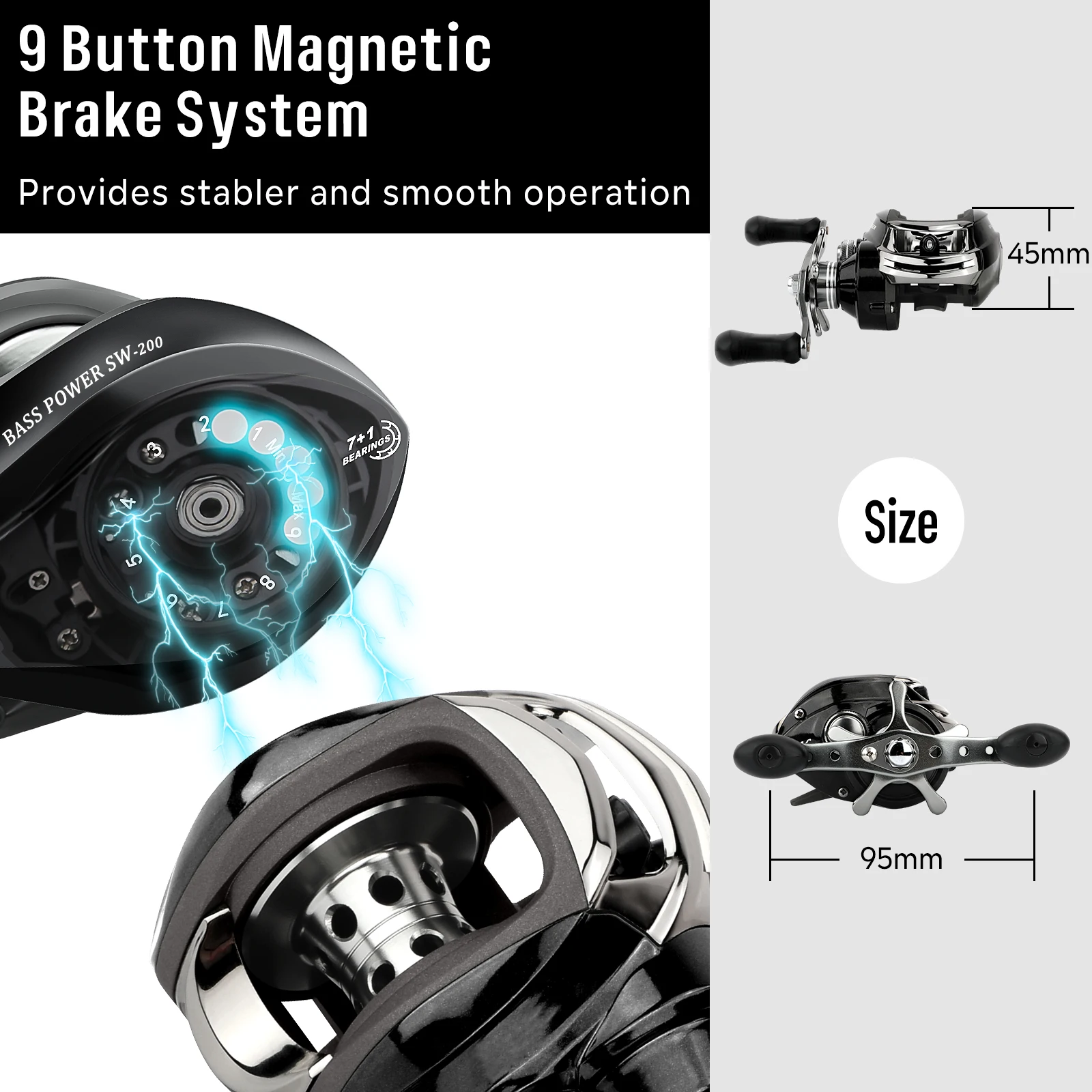 3. Fácil de usar: el sistema de doble freno de 4 pines y 7 imanes ayuda a los pescadores nuevos a lanzar carretes para evitar carreras excesivas y peces perdidos nuevamente