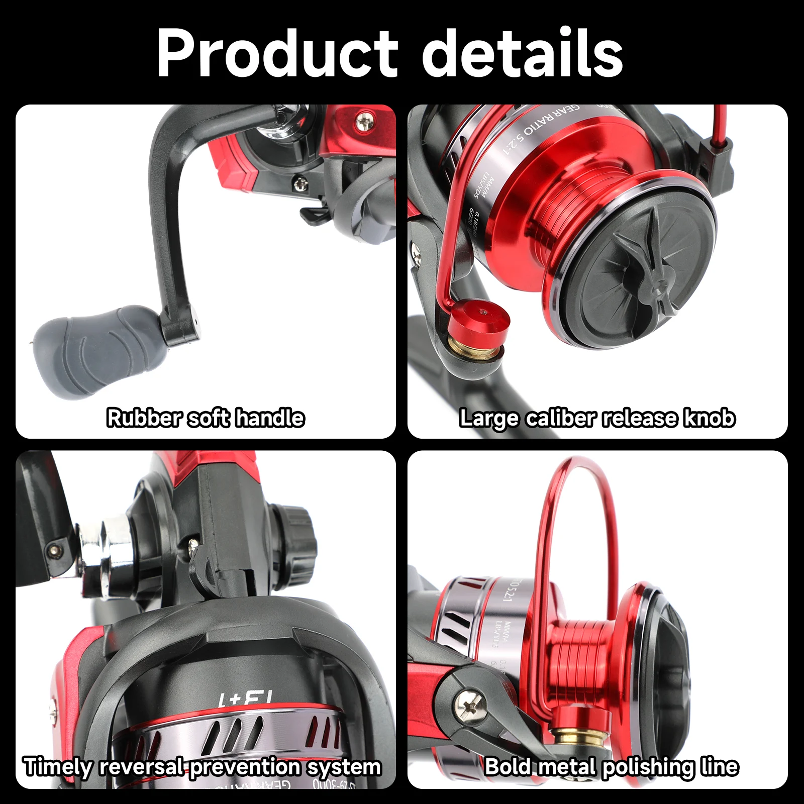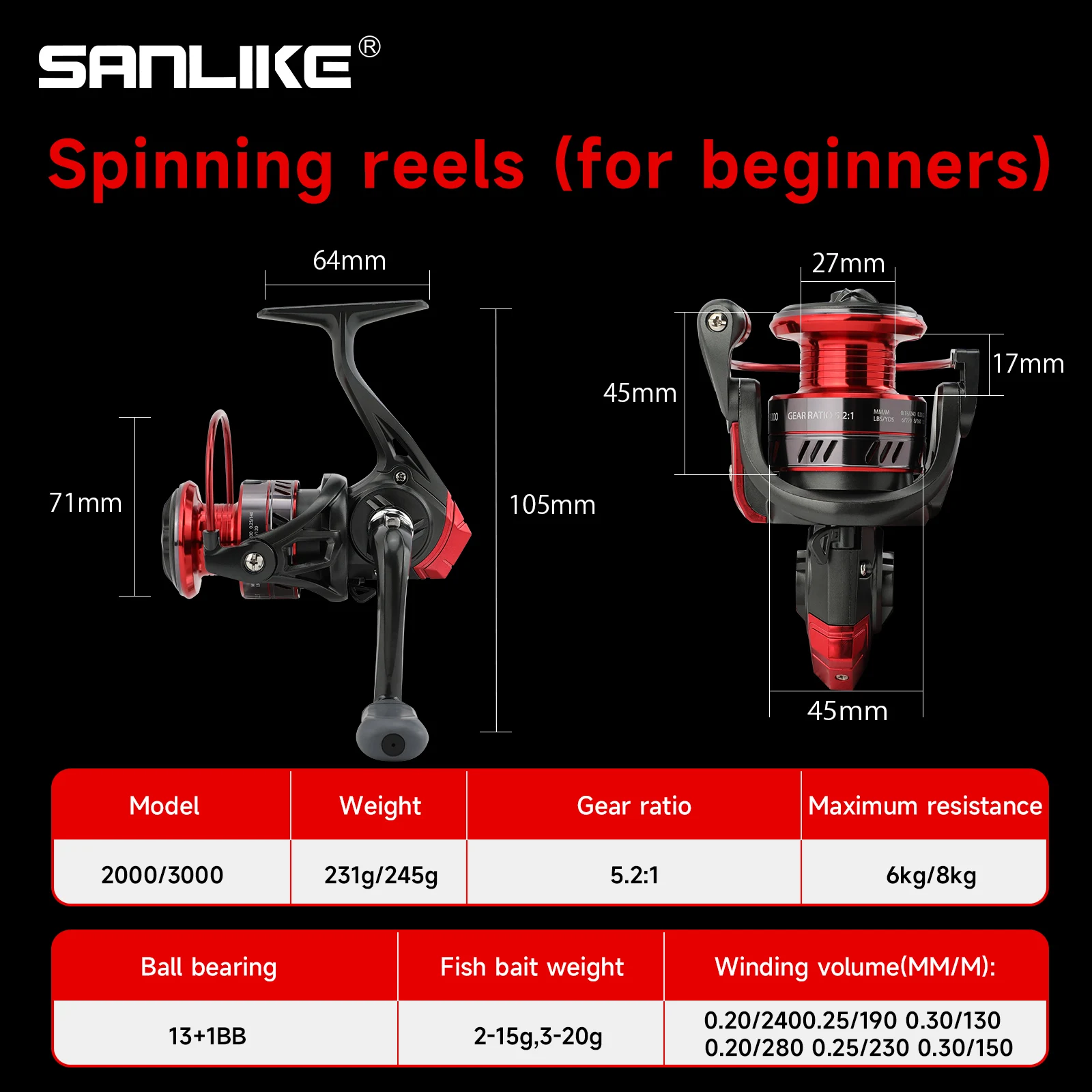 Carrete de aleación de aluminio SANLIKE, carretes giratorios 5,2: 1, relación de engranaje 13 + 1 BB, carrete de pesca con agarre de goma para accesorios de pesca de agua salada