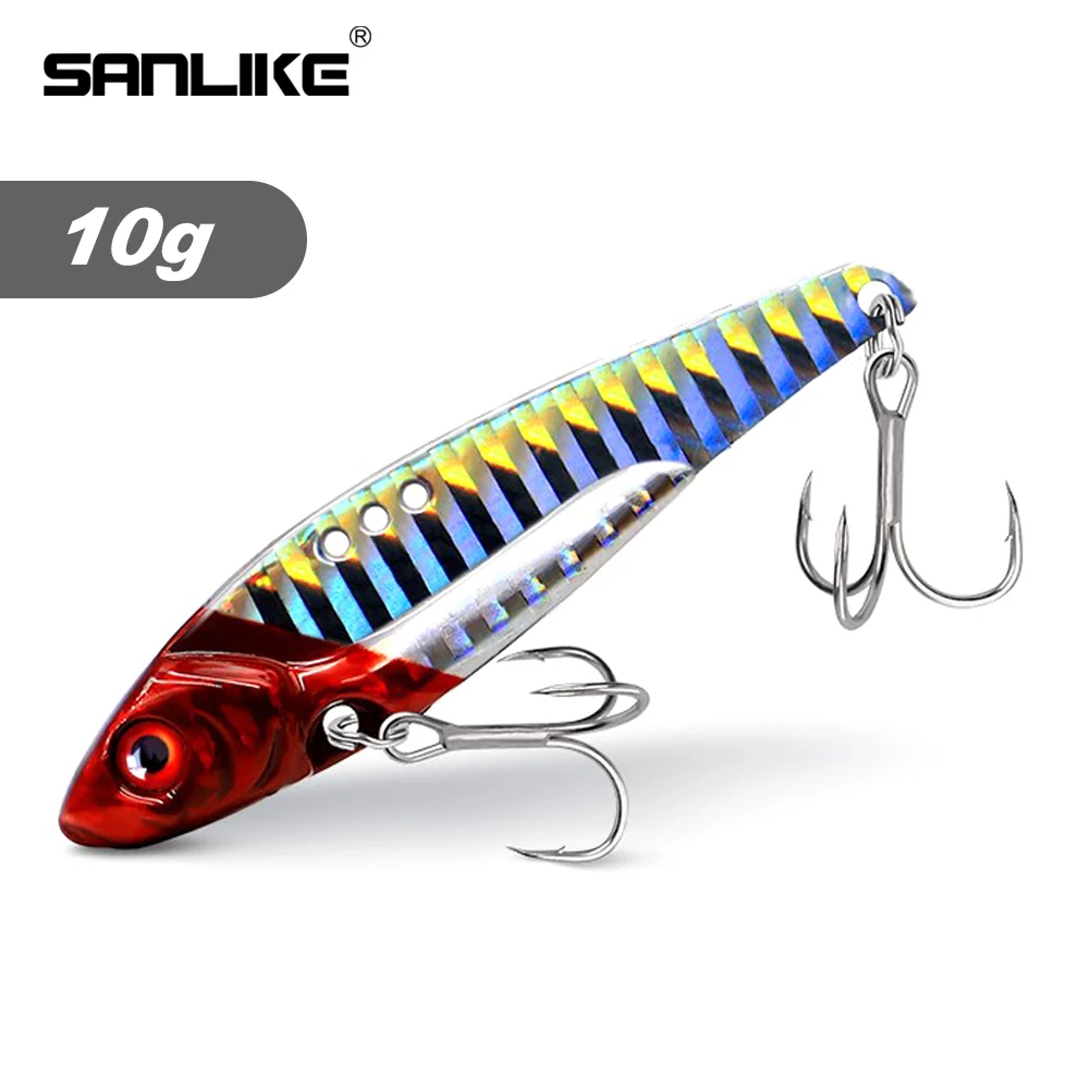 SANLIKE 10g 5,8cm plantilla de Metal cebo de plomo con 2 ganchos, ganchos triples afilados y fuertes aparejos de cebo falso para natación completa