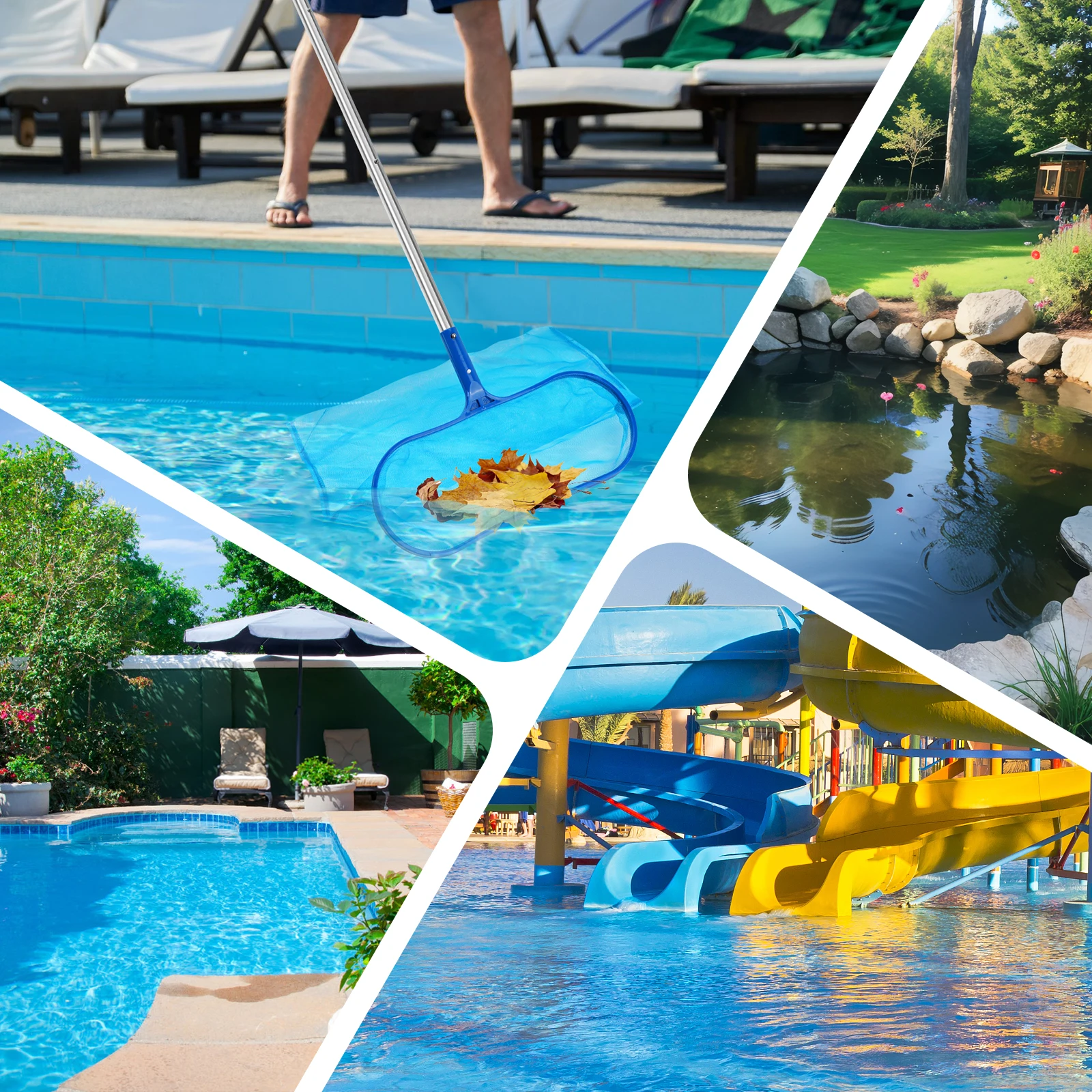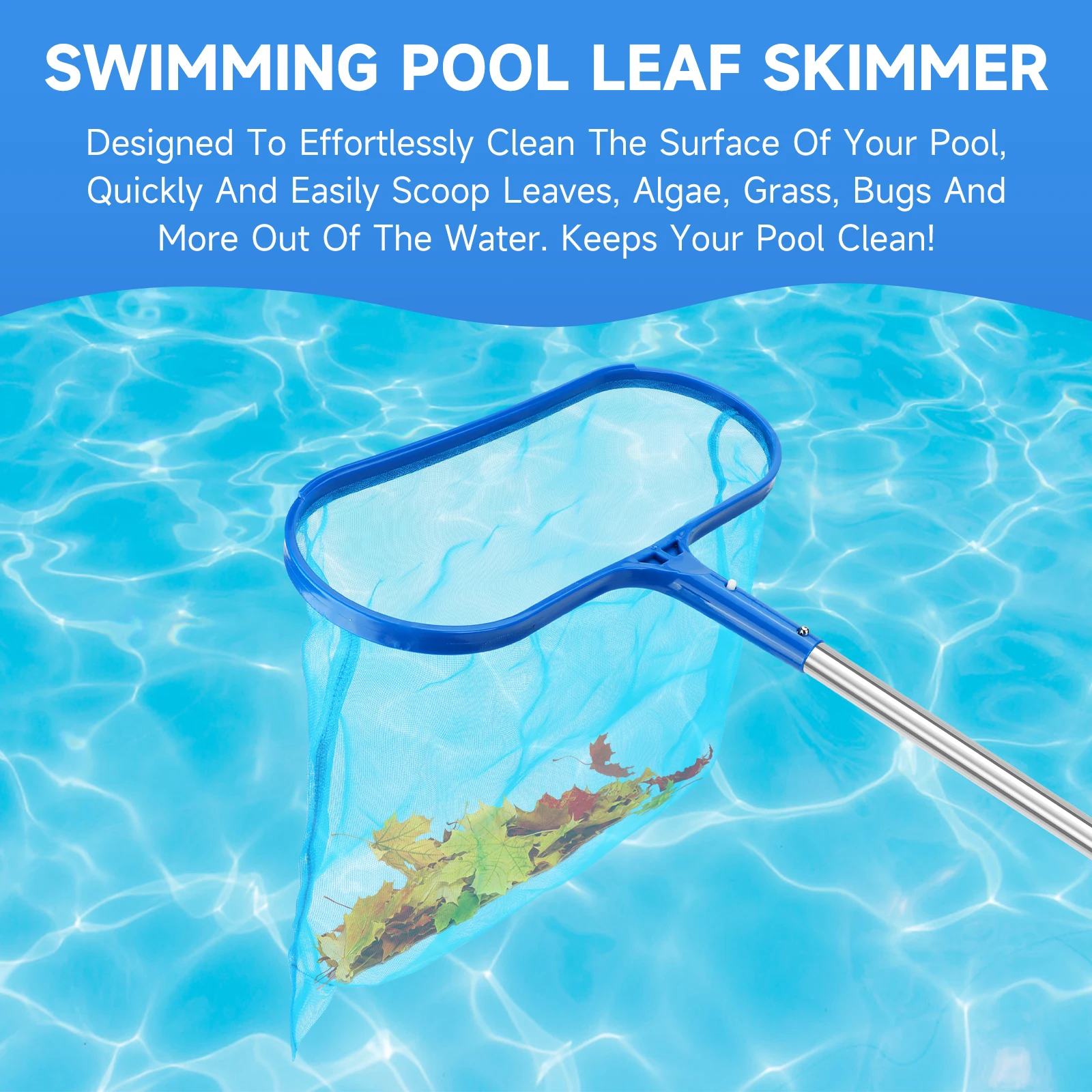 Esta red para rastrillos de hojas de piscina es extremadamente versátil.Puede sacar fácilmente hojas, insectos y otros desechos flotantes desde piscinas elevadas y subterráneas.Además, es adecuado para limpiar jacuzzis, spas, fuentes de piscina, así como áreas de natación de niños y adultos, manteniendo toda su área de agua limpia y acogedora.