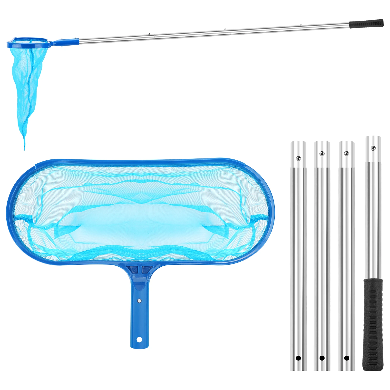 Cesta skimmer SANLIKE de 158 cm con poste extensible de acero inoxidable, red ancinadora de malla fina para limpiar restos de hojas en el spa de la piscina