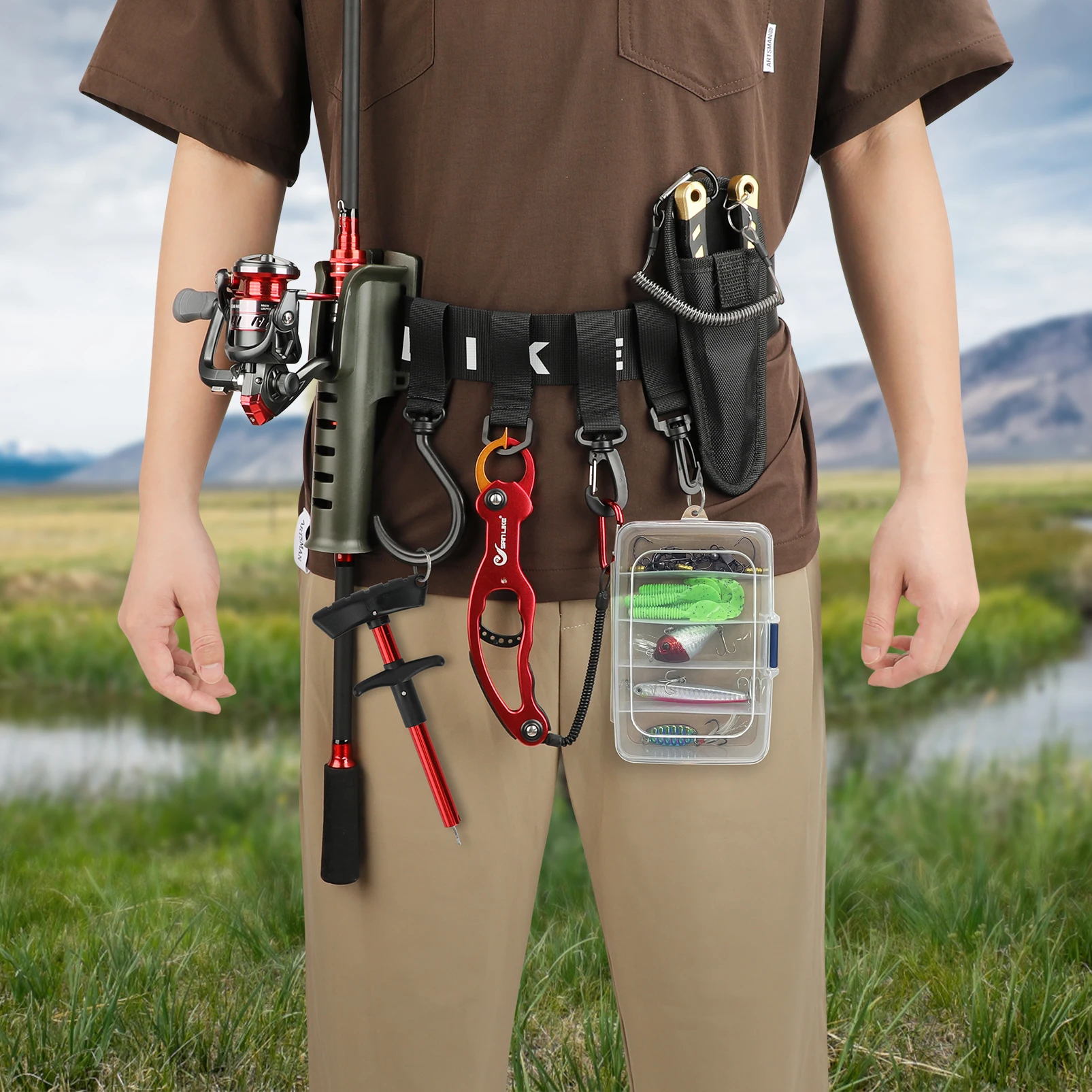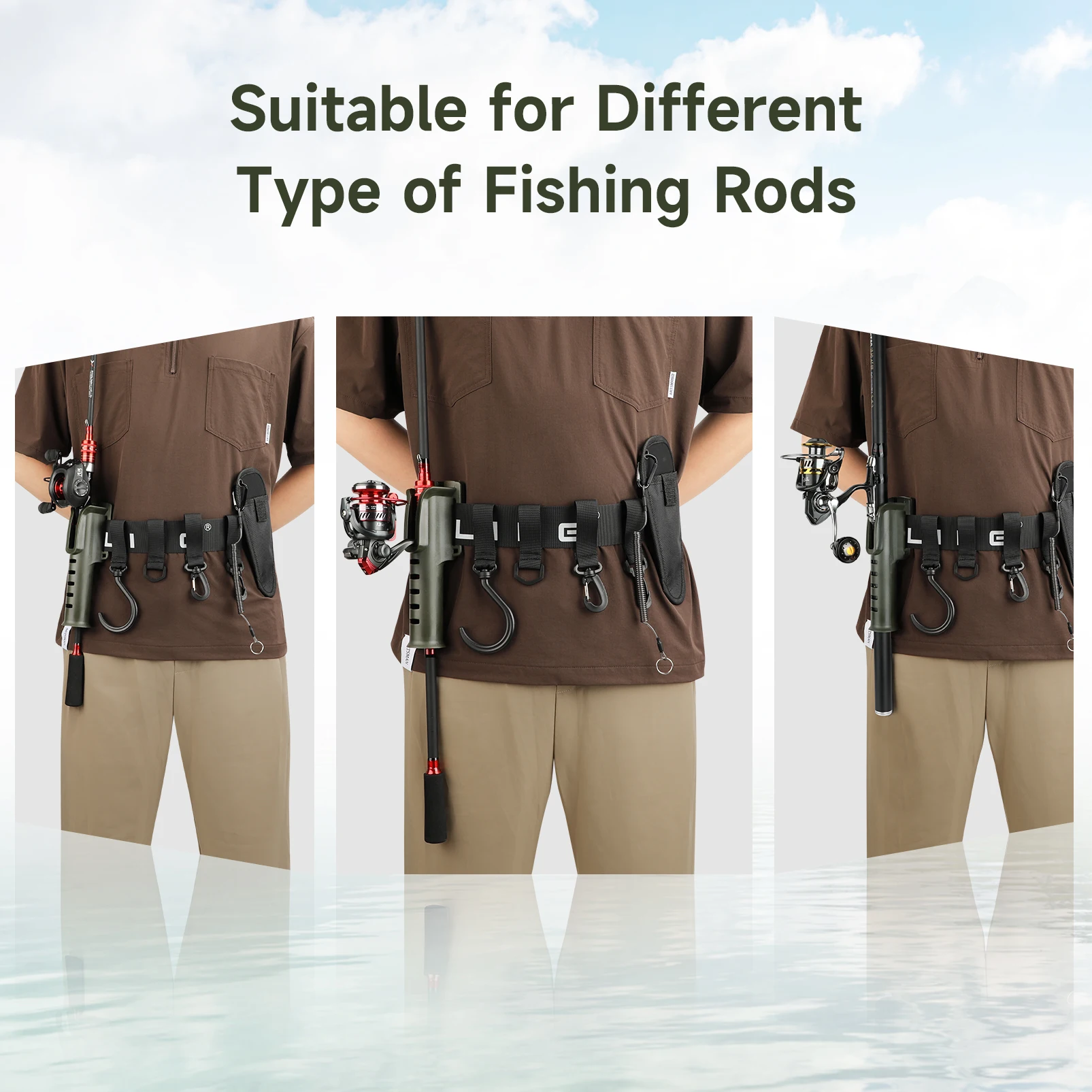 Cinturón de caña de pescar SANLIKE con 4 hebillas de suspensión de plástico más bolsa de alicates Lua más cilindro de caña de pescar soporte de caña de pescar portátil