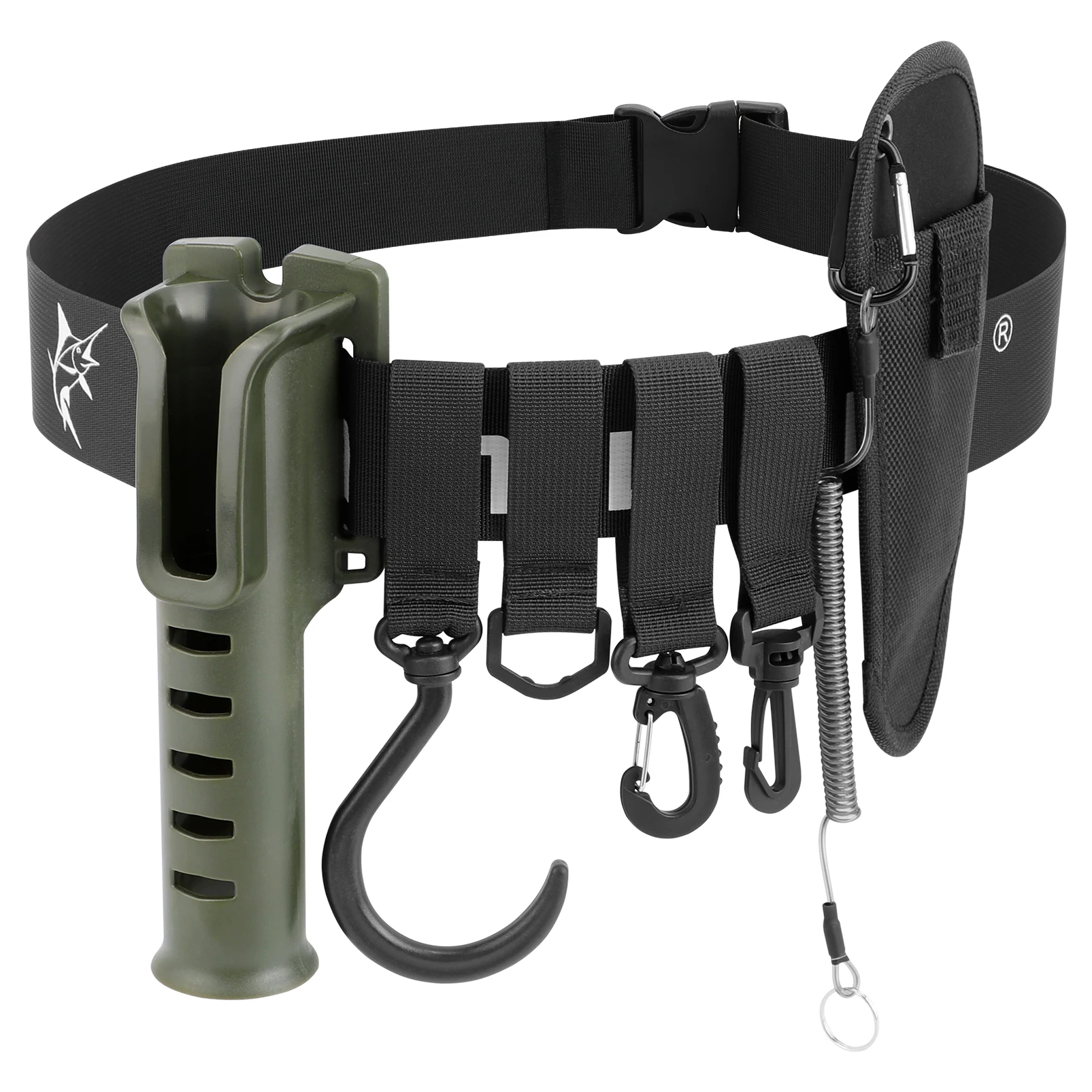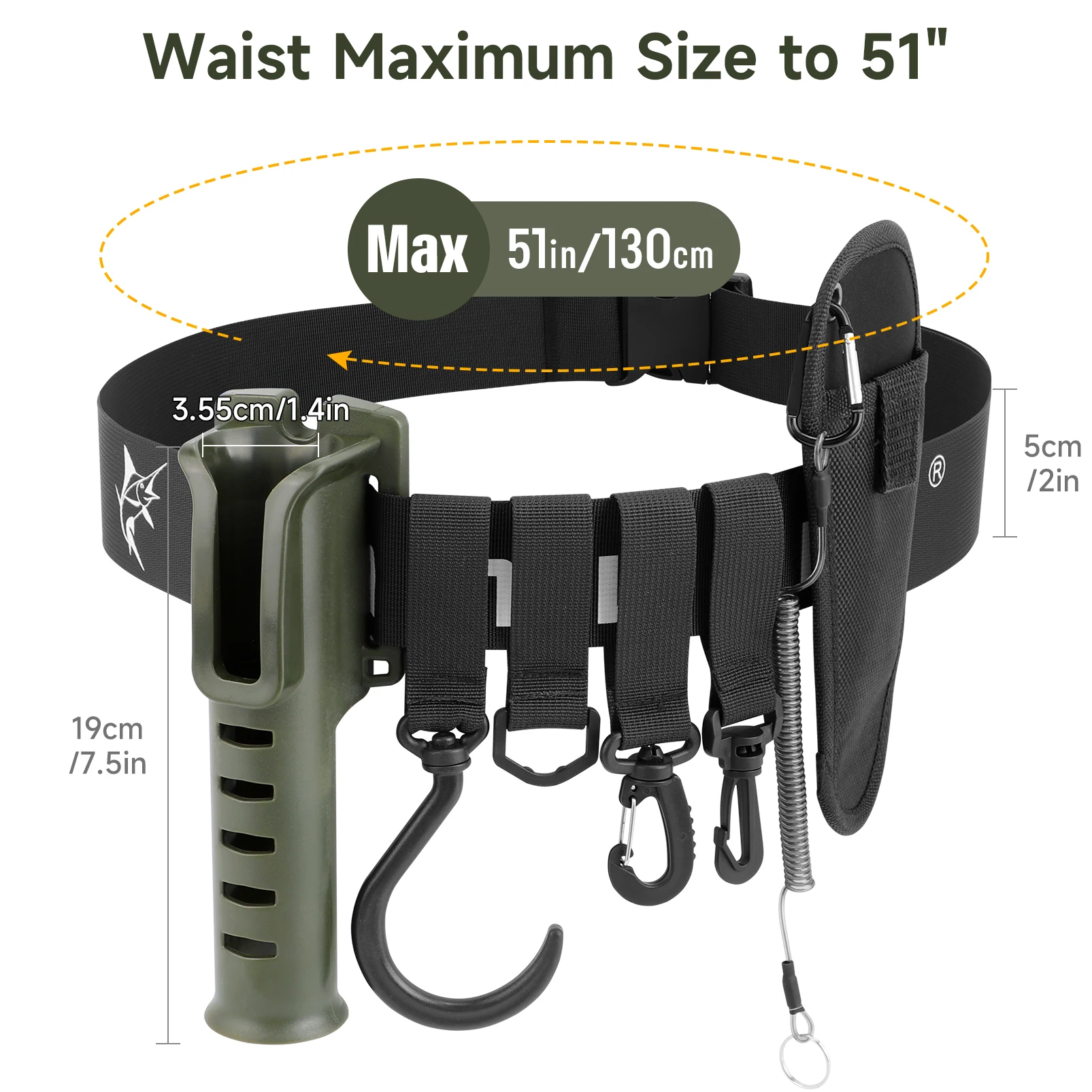 1. Convenientemente diseñado para liberar sus manos, este soporte para caña de pescar con correa para la cintura sostiene su caña en su lugar mientras cambia los anzuelos y señuelos.