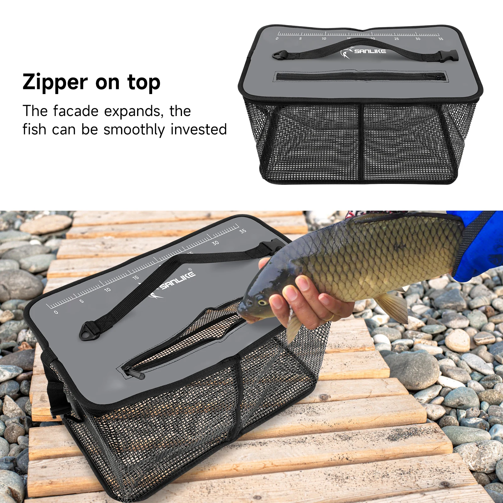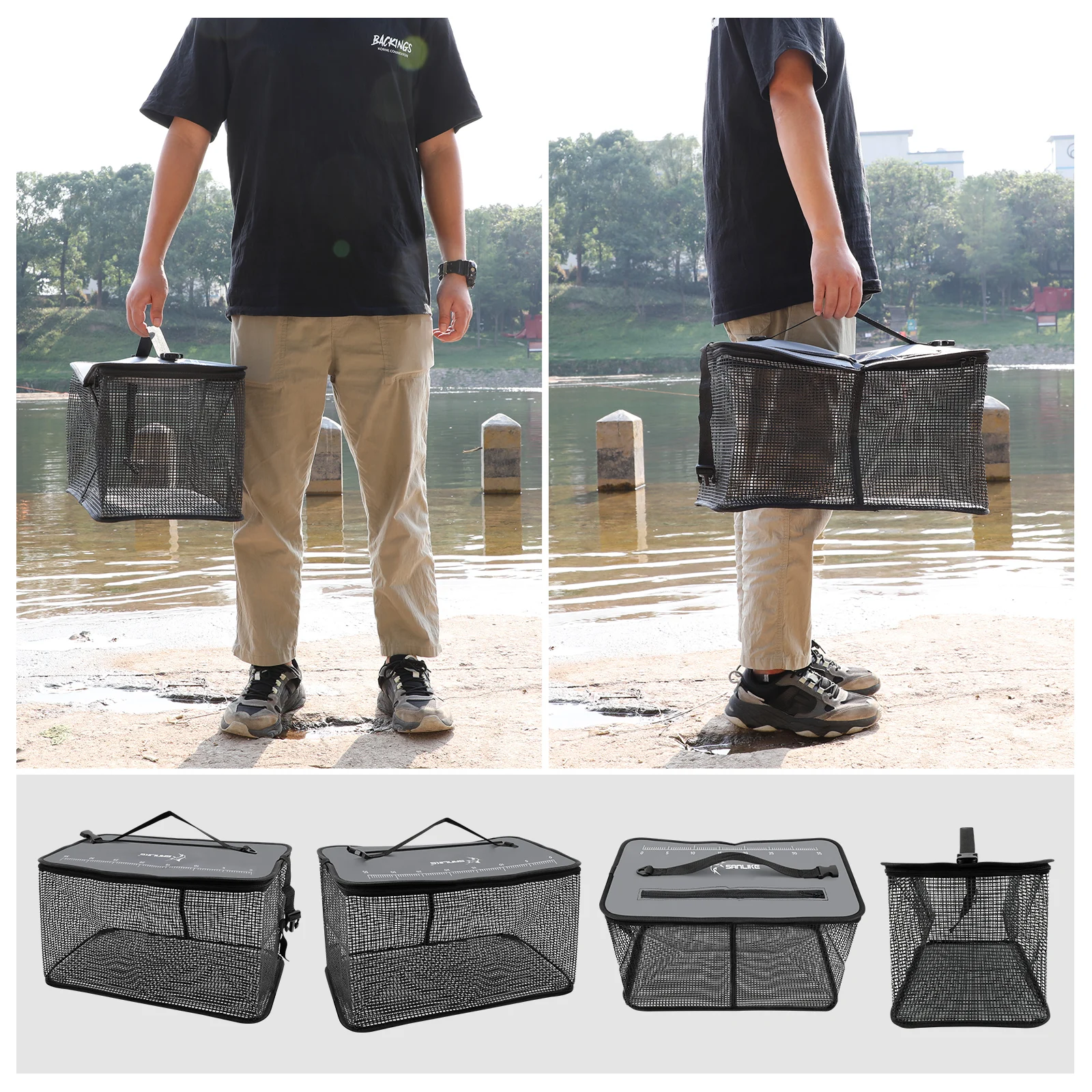 SANLIKE Living Fish Bucket multifunción plegable Fish Guard Net tanque de agua portátil aparejos de pesca caja de almacenamiento de peces vivos