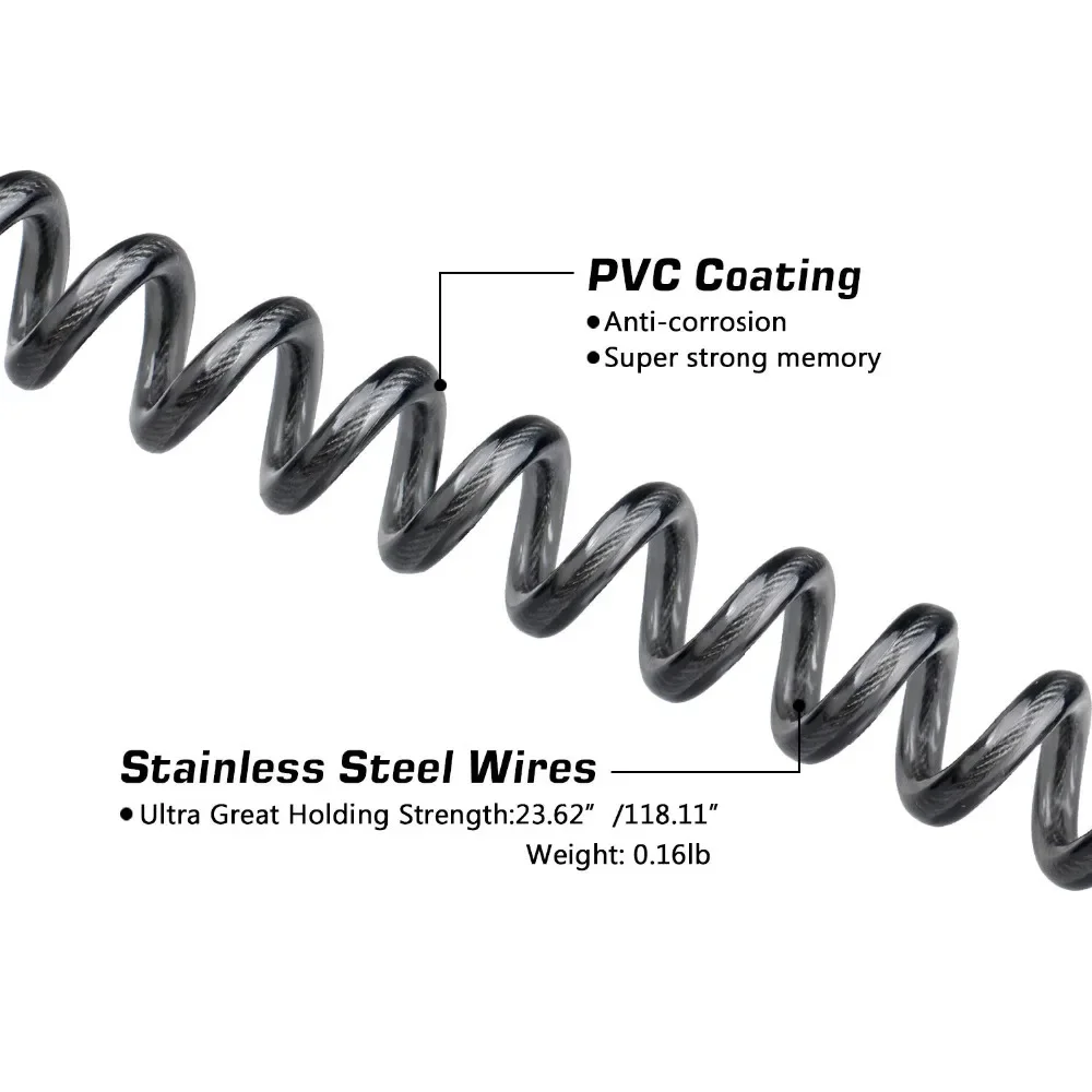 1. El Cordón de pesca está hecho de alambre de acero y cubierto con plástico de PVC, suave y flexible, se puede restaurar fácilmente tal cual. Resistente al óxido y a la corrosión.