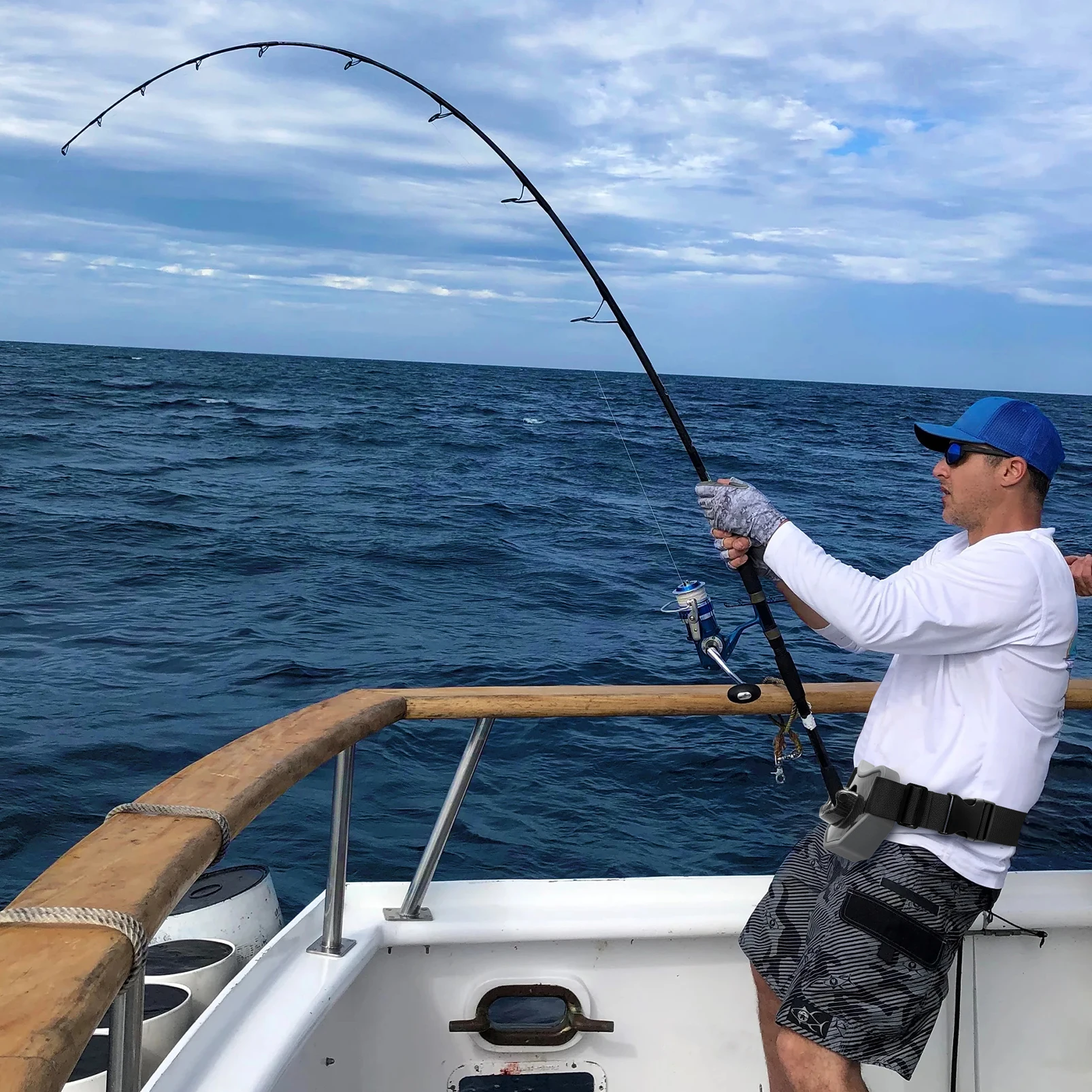 2. Fishing belt is made of high quality material .The soft EVA pad which is impact resistant touch helps protect your abdomen when fighting a fish .The fish rod holder is made of carbon fiber that is seawater corrosion resistance for long-term use.