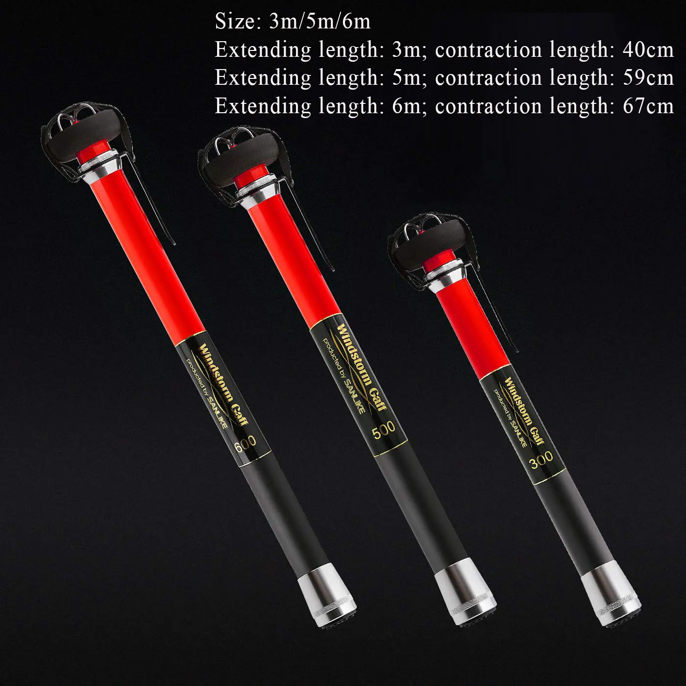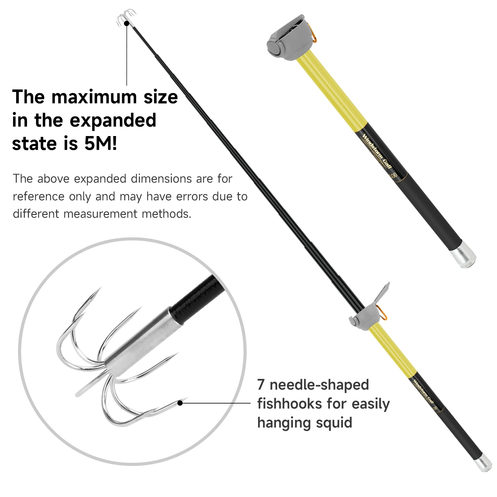 SANLIKE-Cinco ganchos portátiles de acero inoxidable, 5M, poste telescópico de fibra de carbono, gancho de calamar extensible
