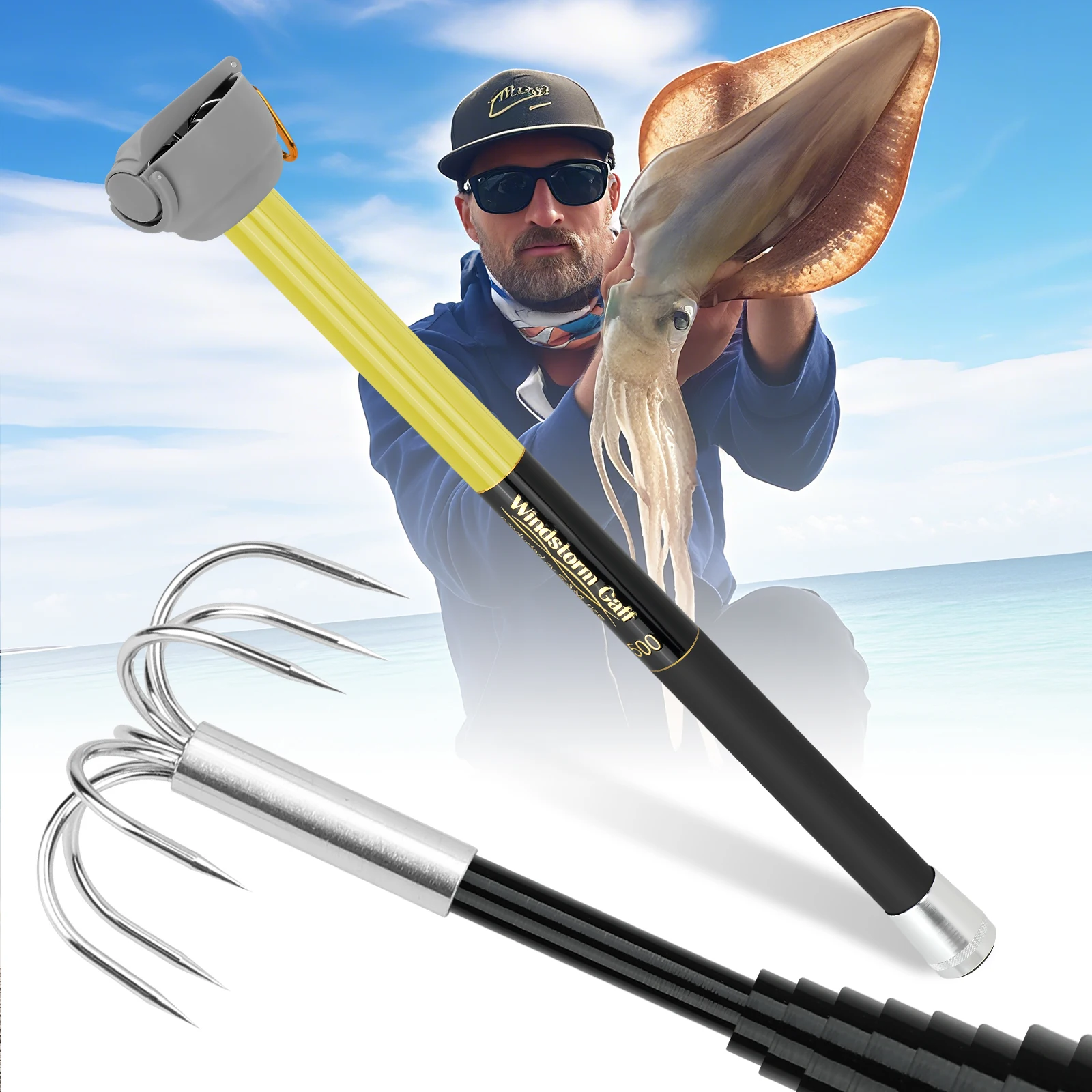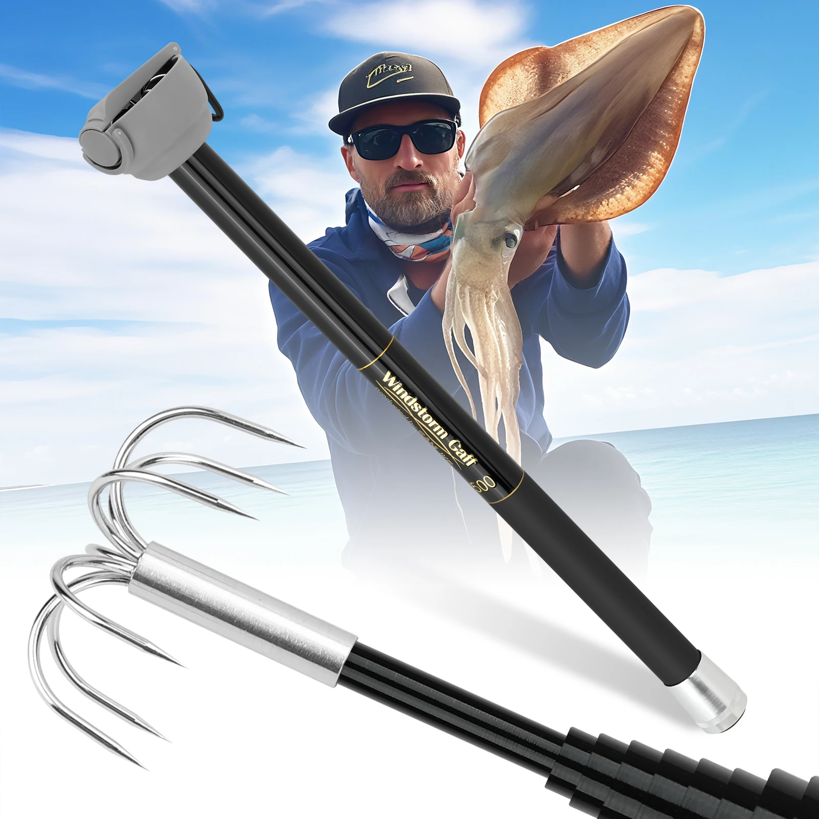 SANLIKE 5M Varilla de calamar telescópica Ganchos de 7 garras de acero inoxidable Mango antideslizante portátil con cubierta de plástico Mosquetón Herramienta de pesca