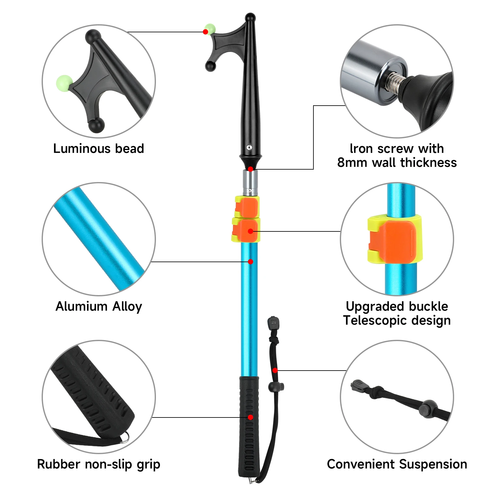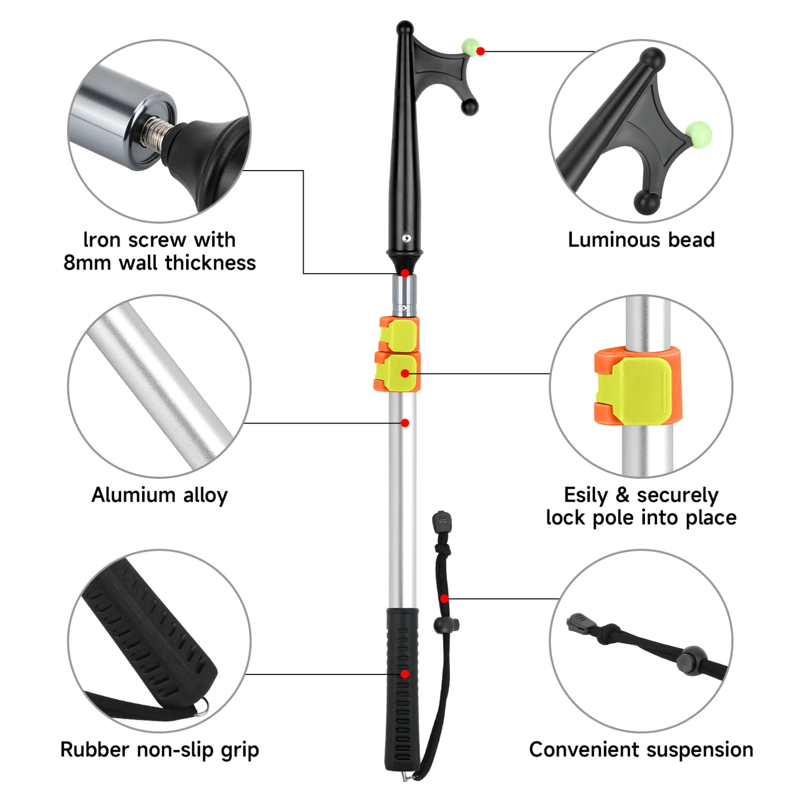 SANLIKE Gancho para barco de aluminio retráctil Durable resistente al óxido con cuentas que brillan en la oscuridad y mango antideslizante para herramientas de remo