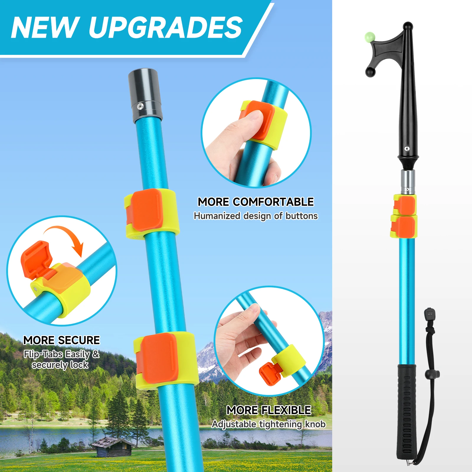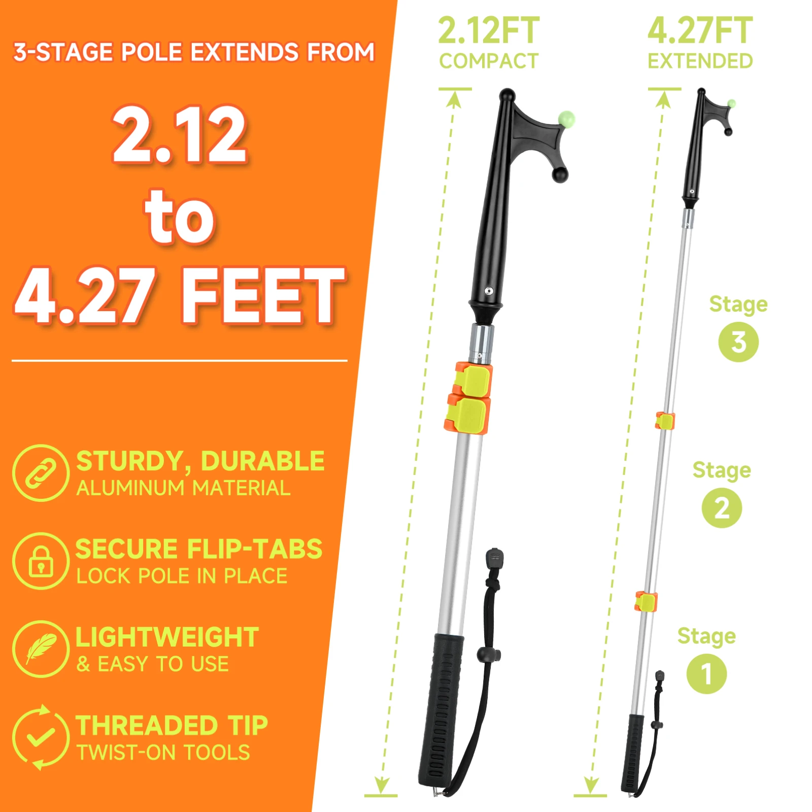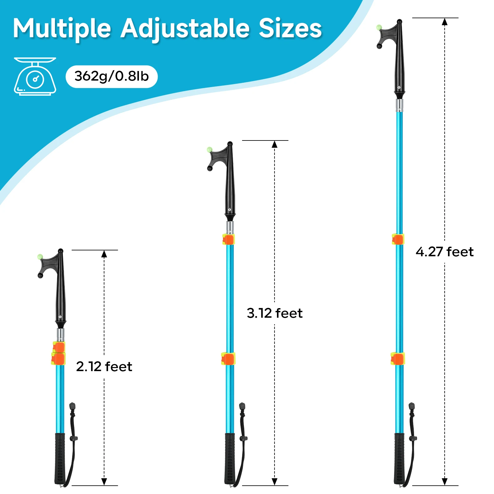 Longitud ajustable de 25,44 a 51,24 pulgadas (aproximadamente 65 a 130 cm), se guarda fácilmente en una cabina de barco o en una mochila, adecuada para diversos escenarios de pesca y navegación, proporcionando el rango operativo óptimo.