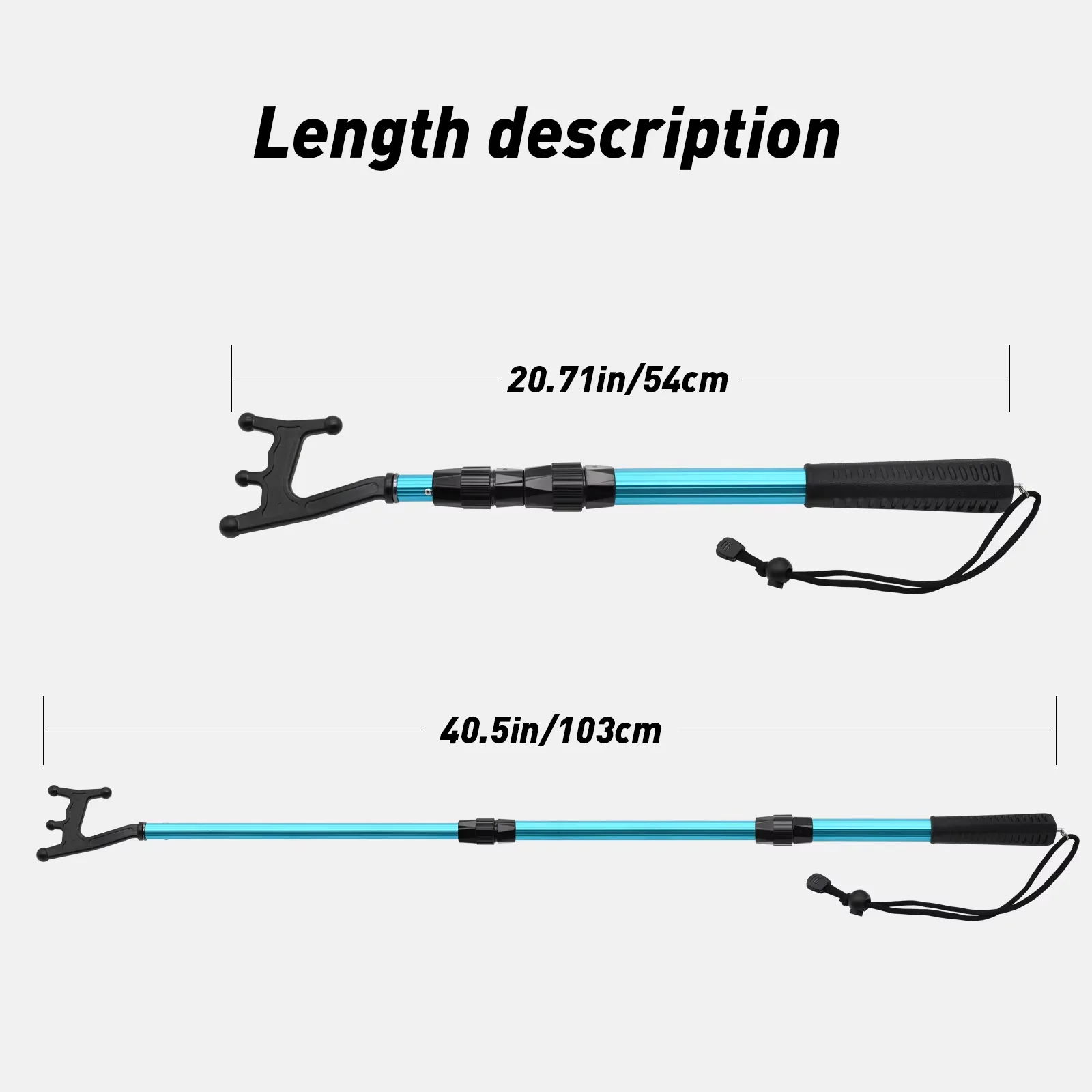 4.Fácil almacenamiento: diseño telescópico con cierre giratorio, longitud del poste ajustable de 3 segundos (54 cm-103 cm), almacenamiento compacto, fácil de transportar.