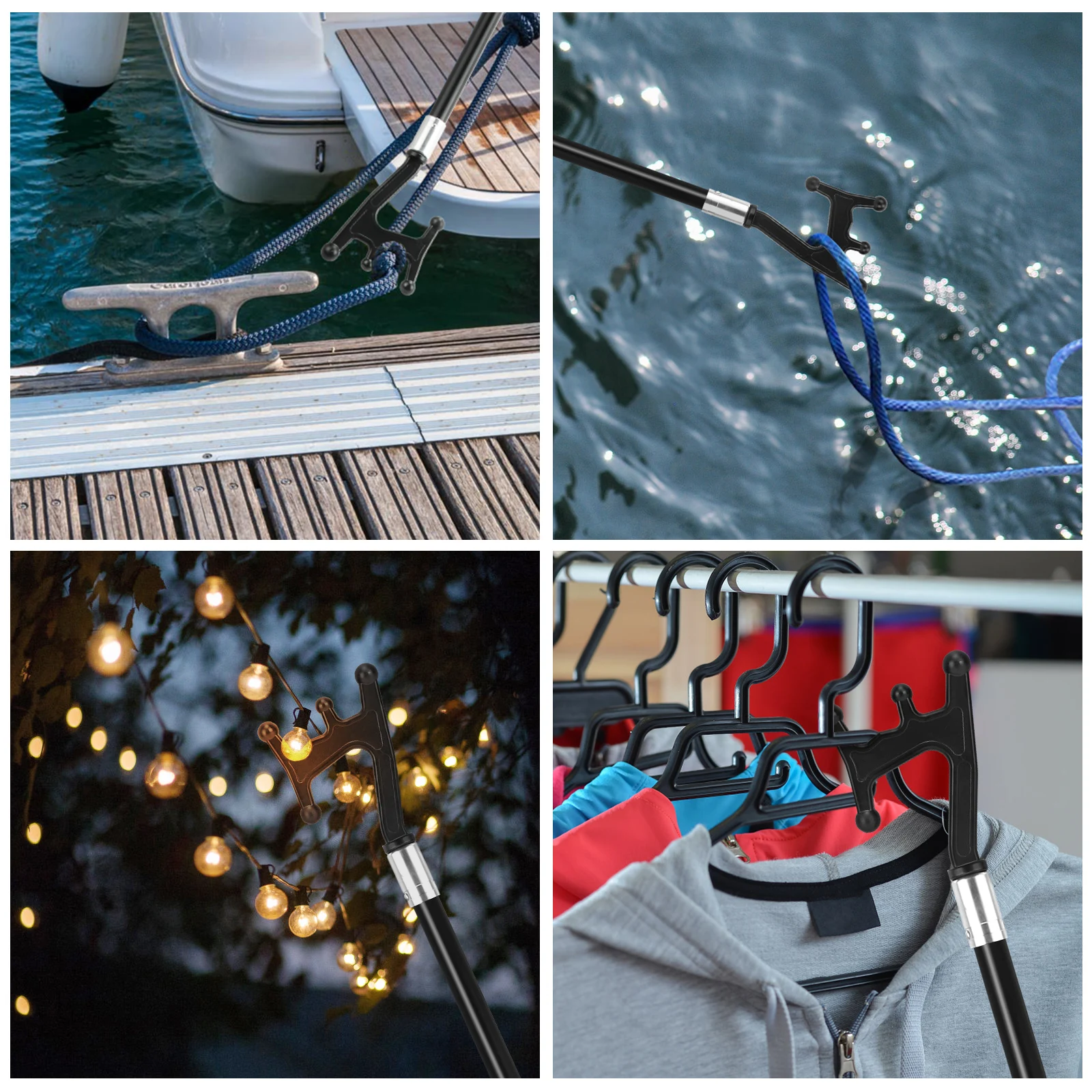 Forma única de gancho para barco con buen agarre y material duradero.Puede bloquear bien la posición del objeto objetivo y satisfacer todas sus necesidades de colgar, empujar y tirar de difícil acceso mientras remo.