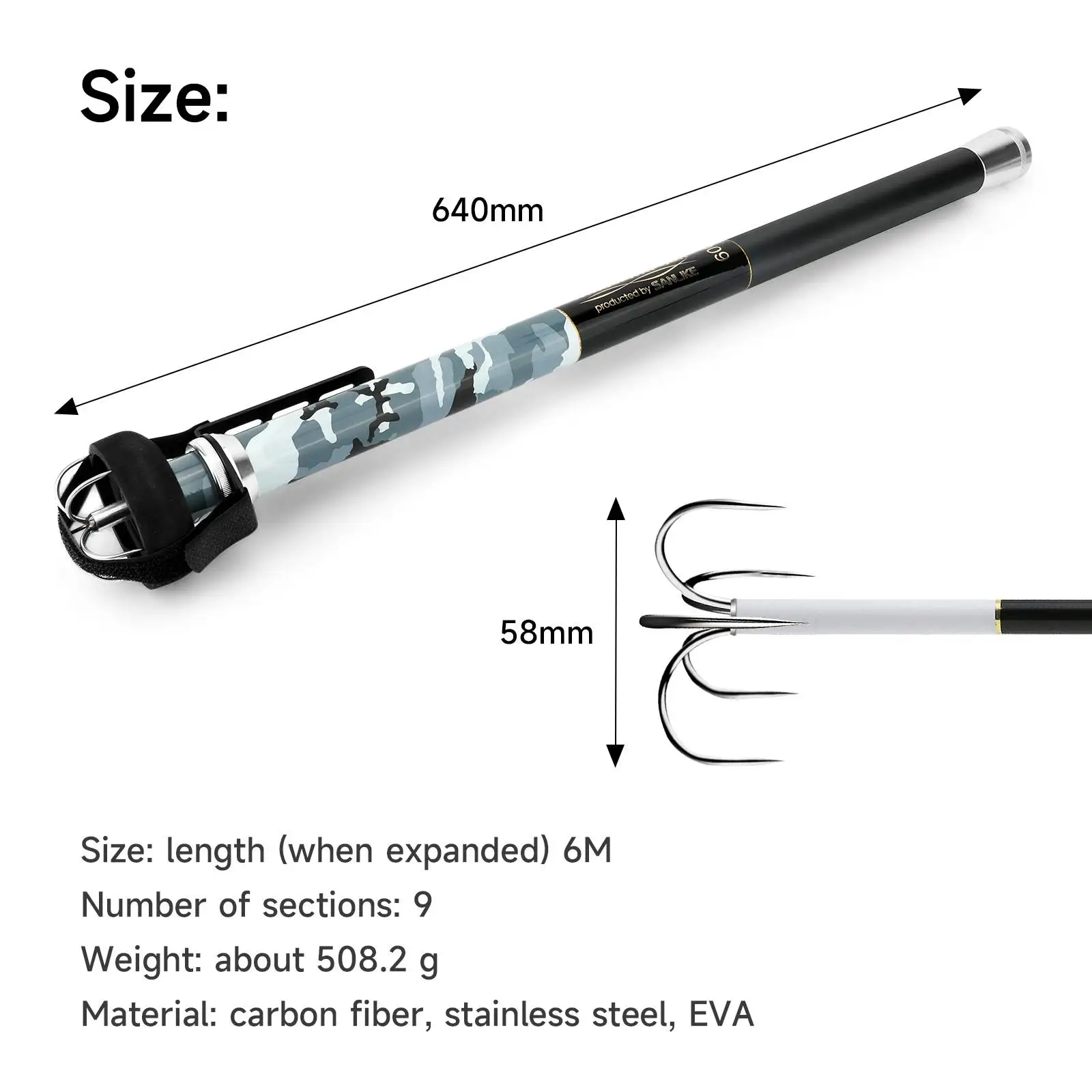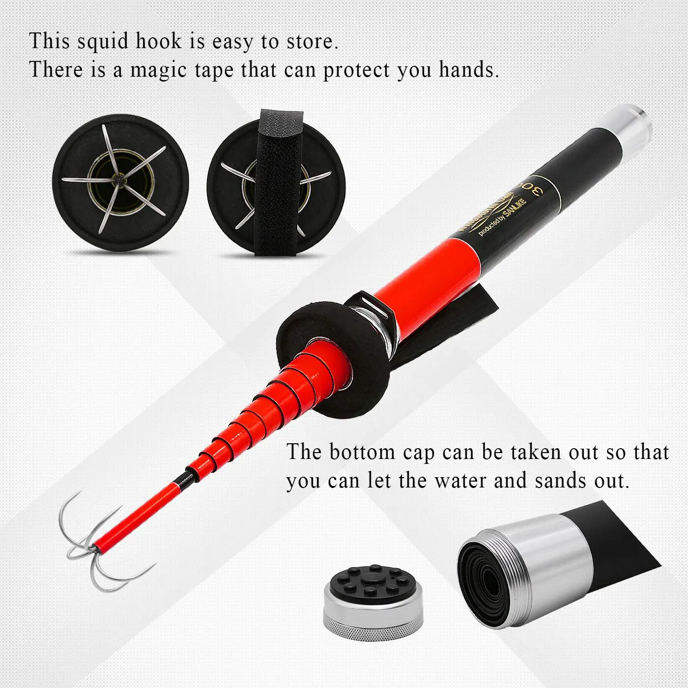 SANLIKE 6M varilla extensible gancho de calamar portátil de acero inoxidable cinco ganchos poste telescópico para cosechar calamares