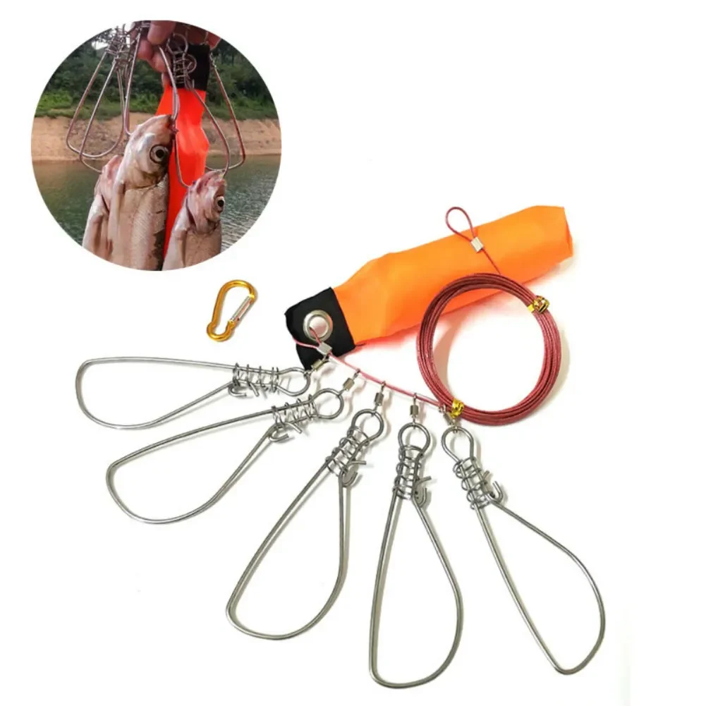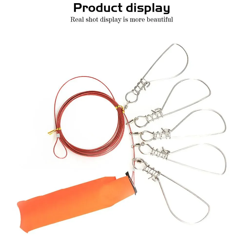 SANLIKE, 5m, hebilla de pescado, cuerda de alambre de bloqueo, juego de hebilla de pez vivo grande de acero, controlador de larguero, flotabilidad para accesorios de pesca, herramienta