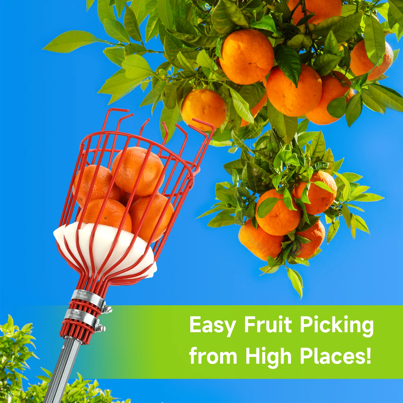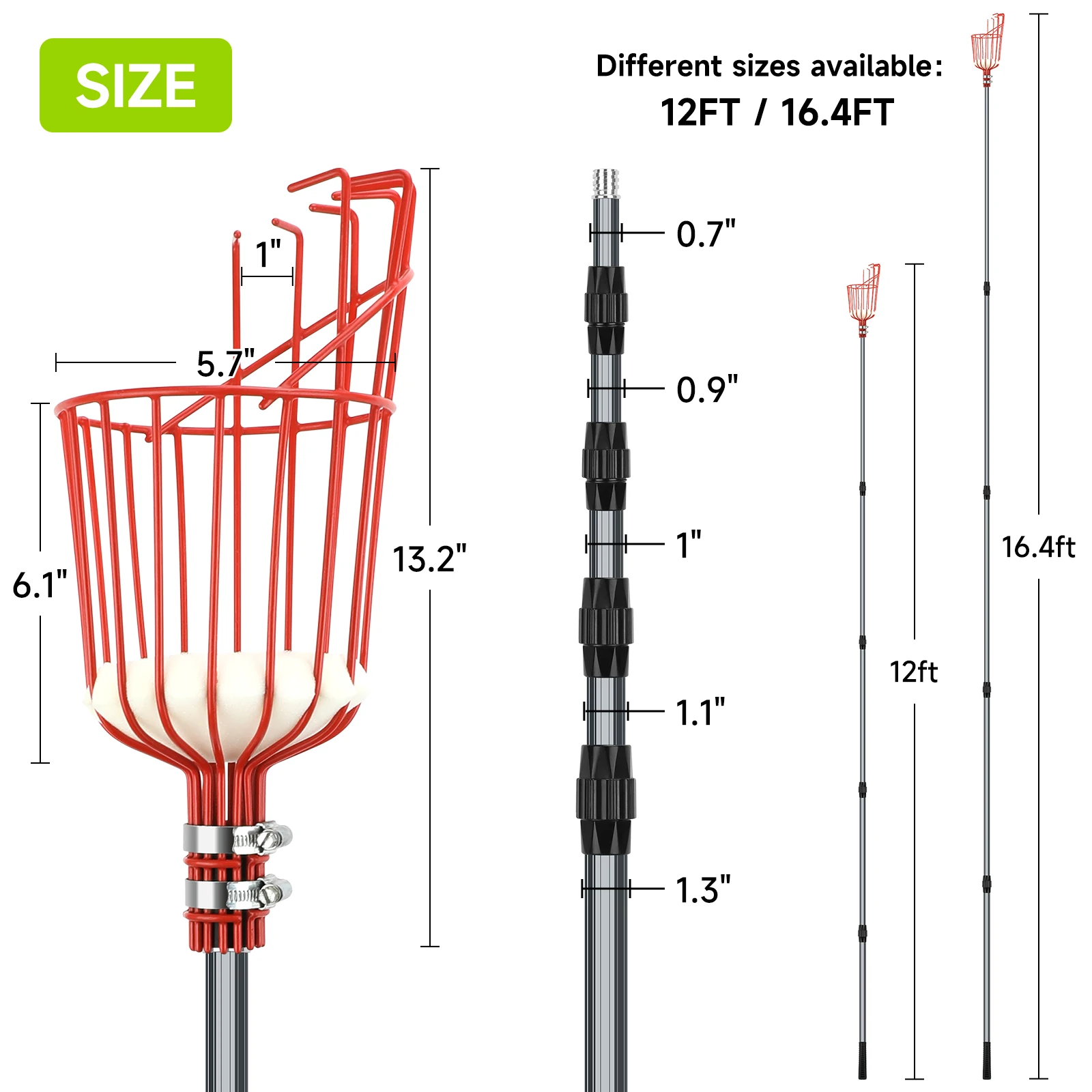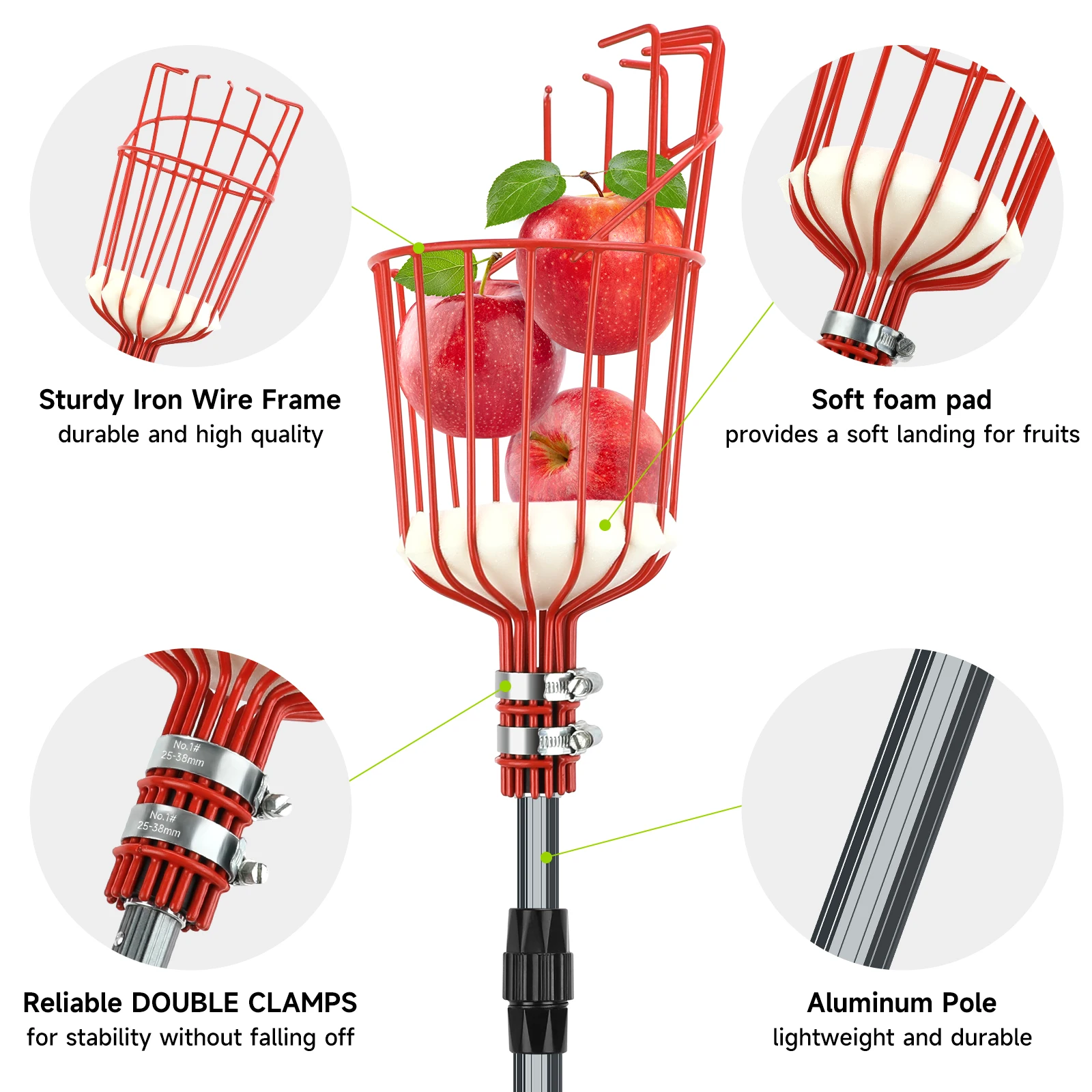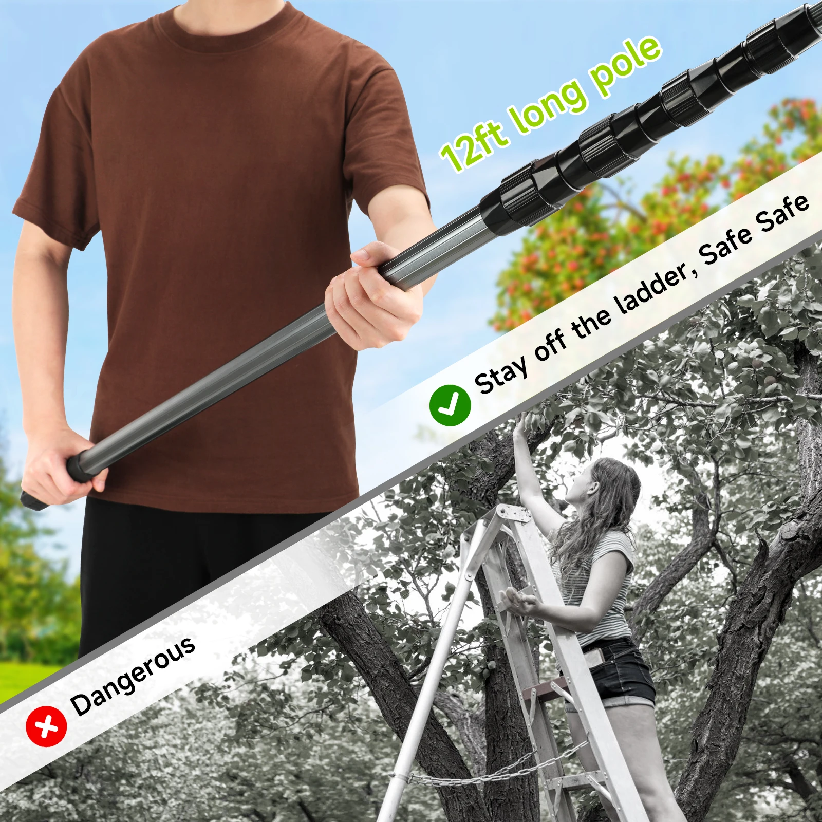 SANLIKE Herramienta ligera para recoger frutas de aluminio, caña telescópica para recoger frutas de 12 pies, cesta de manzana torcida fácil de montar