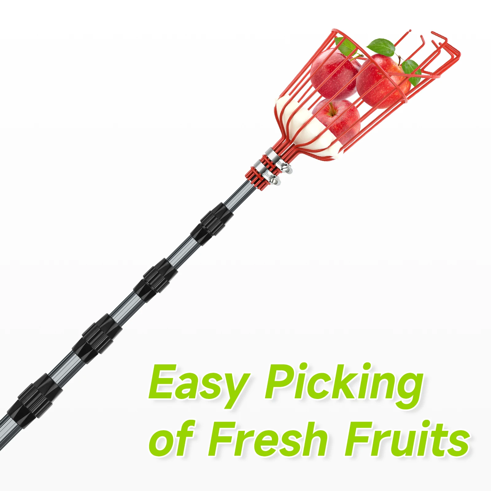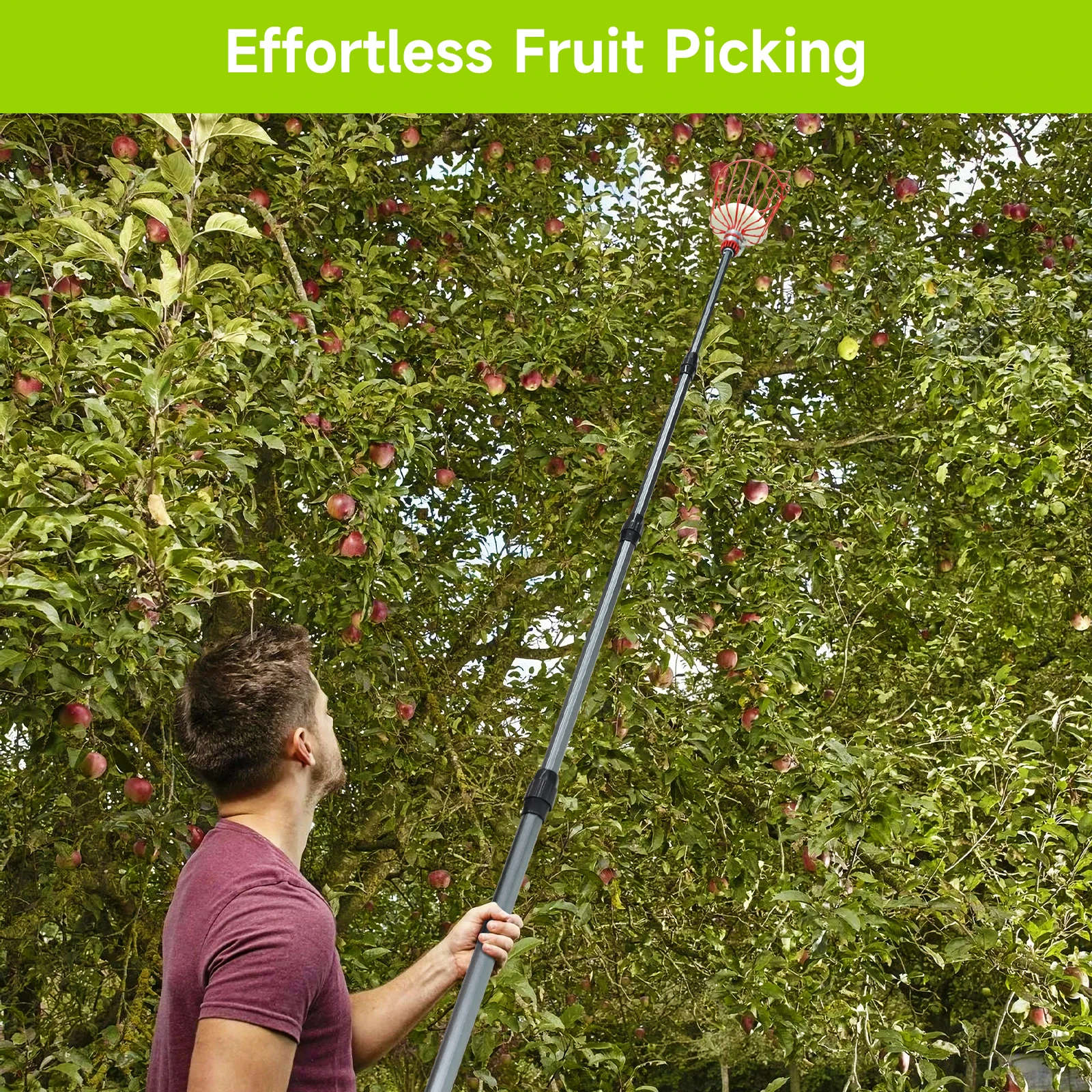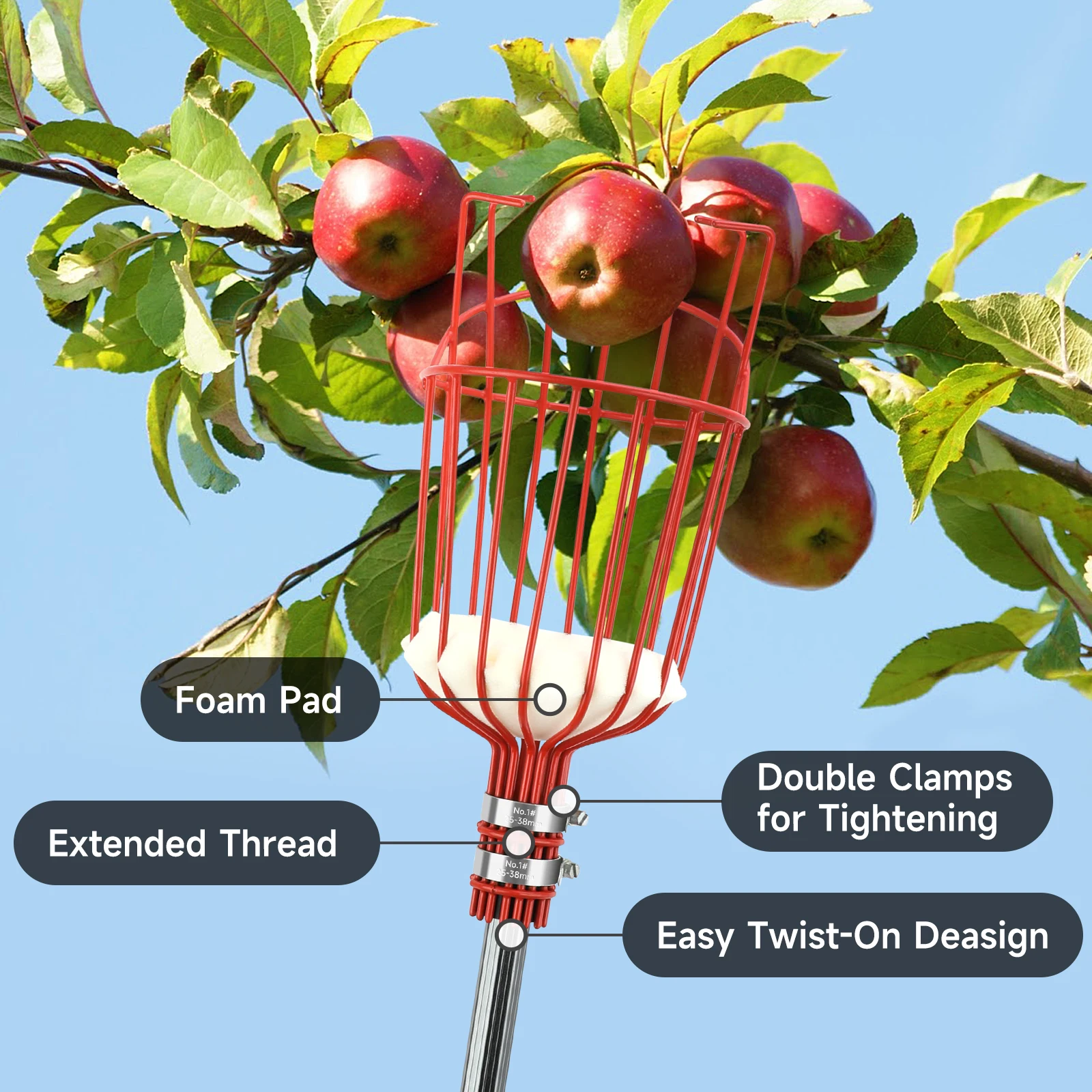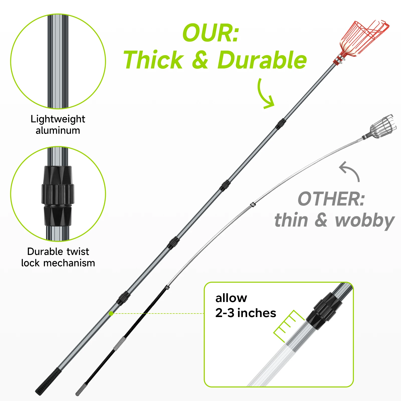 SANLIKE Herramienta ligera para recoger frutas de aluminio, caña telescópica para recoger frutas de 12 pies, cesta de manzana torcida fácil de montar