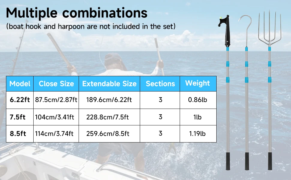 3.Combinación universal: orificio para tornillo universal de 8 mm para combinar con ganchos, arpones, ganchos para botes, redes de aterrizaje u otras herramientas.¡Haz tus propias herramientas de caza y consigue más precias!