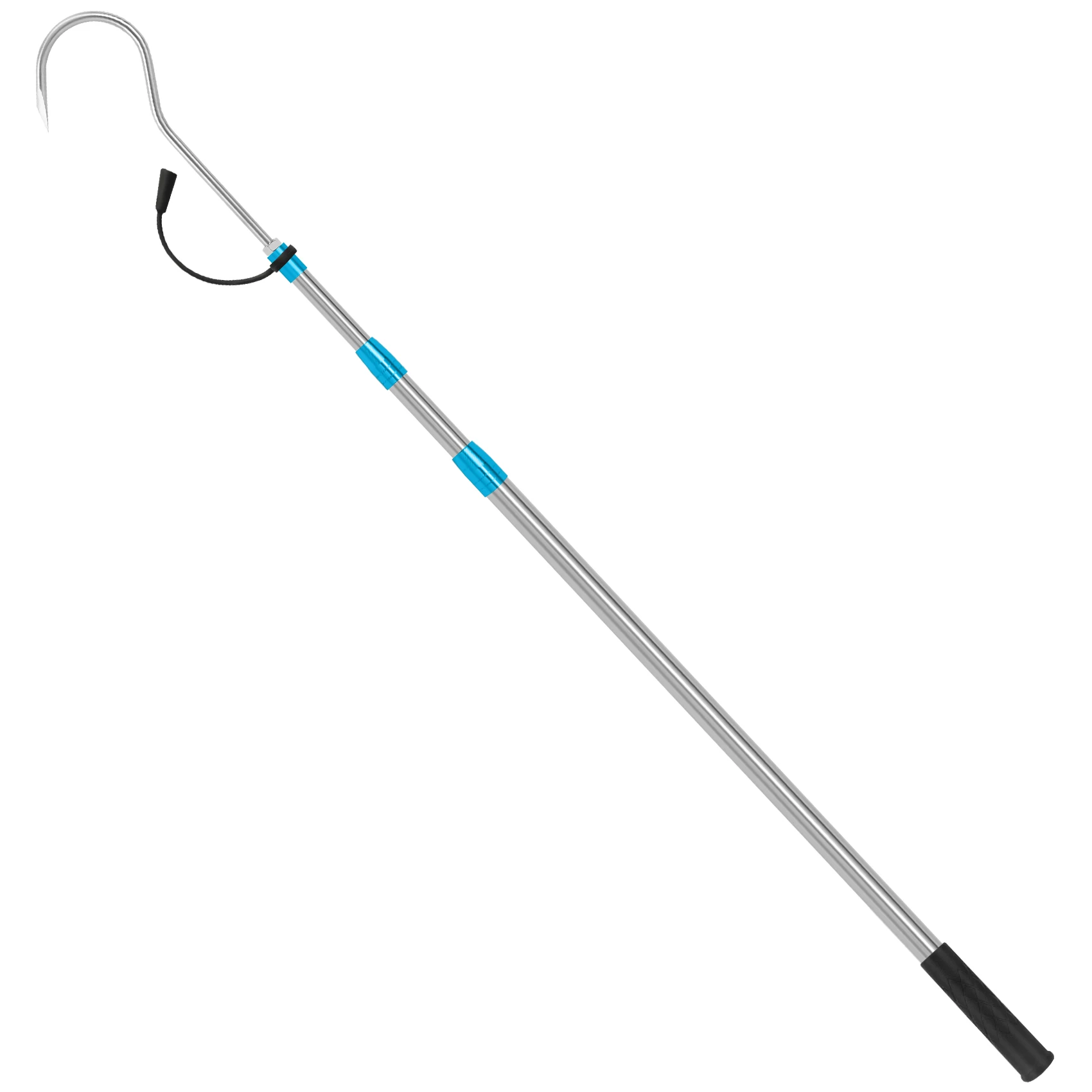 2.Material: el accesorio telescópico para peces está hecho de acero inoxidable, el agarre es de PVC antideslizante, liviano y duradero.El gancho con tapa protectora, más seguro de usar.