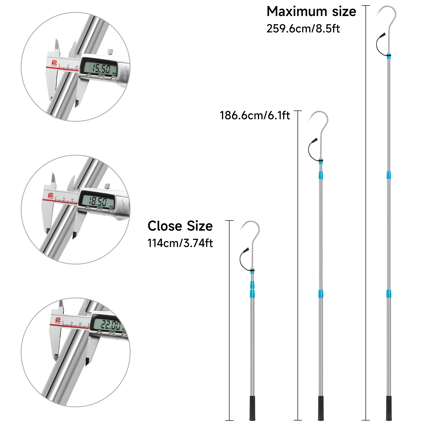 5.Adecuado: para todo tipo de actividades de pesca, el anzuelo telescópico Gaff es liviano pero lo suficientemente fuerte como para hacer frente a esos peces grandes.