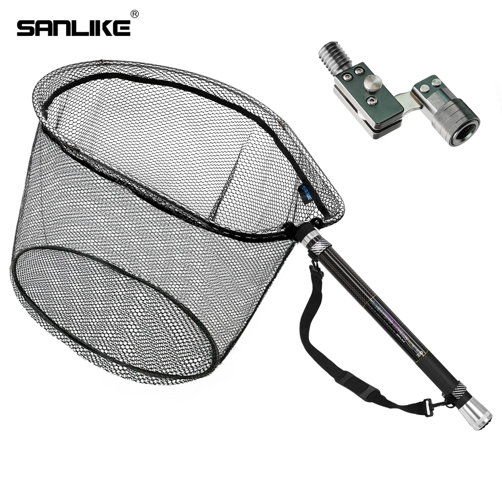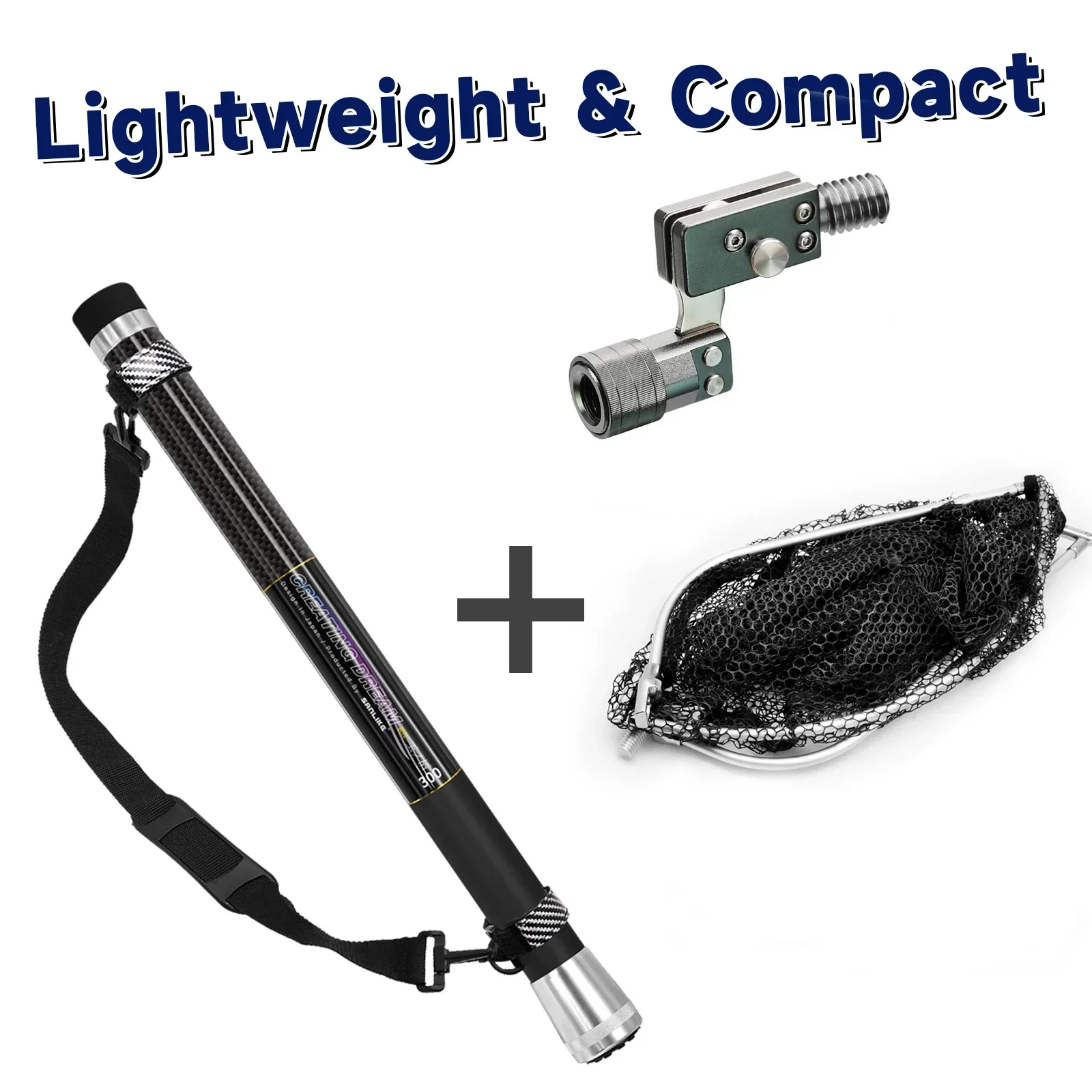 SANLIKE Juego de convertidor de poste de red de pesca de 3m, poste de fibra de carbono retráctil, cabezales convertidores de poste de red de acero inoxidable plegables de PE