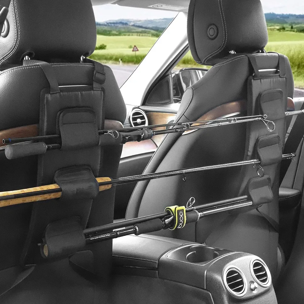 SANLIKE, juego de estante para caña de pescar para asiento de coche de 2 piezas, estante para caña de pescar para coche, correa de Velcro, estante ajustable para caña de pescar, cinturón de fijación para coche