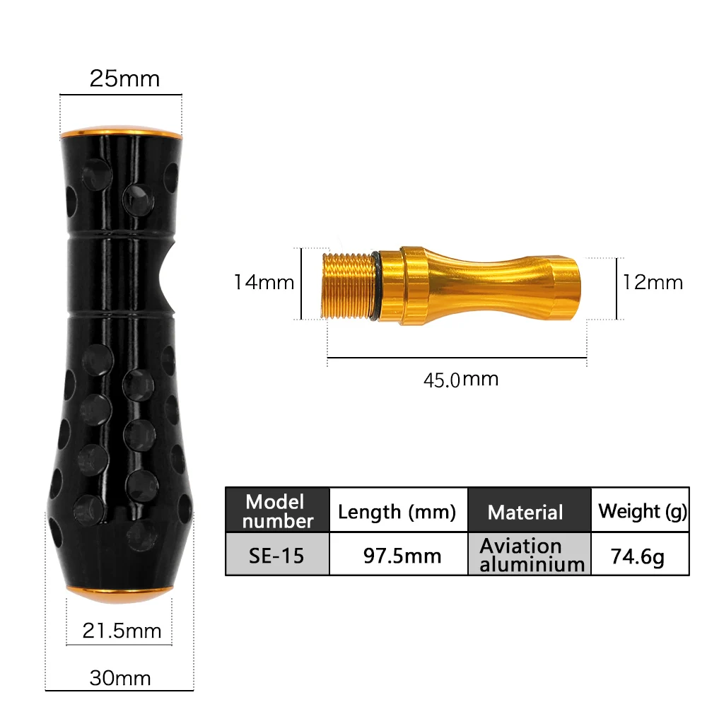 Model: SE-15Color: blue, gold,red,blackLength: 97.5mm Weight: 75gFit for Shimano reel handle B & Daiwa handle LShimano model:SC小船: 800XH/1000XH/2000XH/3000XH/800/1000/2000/3000; (FORCE MASTER): 1000MKHD; (STELLA)SW: 4000XG; (STELLA)SW: 5000HG/5000XG/5000PG/6000HG/6000PG/6000XG;(STELLA)SW: 8000HG/8000PG/10000PG/14000XG;(STELLA)SW: 18000HG/20000PG;(STELLA)SW: 30000;(BLOMASTER)SW: 4000XG/4000HG/5000XG/5000PG;(BLOMASTER)SW: 6000HG/6000PG/6000XG;(BLOMASTER)SW: 8000HG/8000PG/10000HG;(POWER AERO) (SPIN POWER);(OCEA CALCUTTA): 300HG/301HG; (TALICA): 20II/25II;(CALCUTTA)F: 800F/801F;(FORCE MASTER): 400;(SPHEROS)SW: 5000HG/6000HG/6000PG/8000HG/8000PG;(BULLS EYE): 5050/5080/9100/9120;(OCEA CONQUEST): 200HG/201HG;(BEAST MASTER): 6000/9000;(FORCE MASTER): 401;(FORCE MASTER): 4000/6000;(TWIN POWER XD)SW: 4000XG; (KAIKON): 2000T/3000T/4000T;Shimano model: (PLAYS): 400; (PLAYS): 3000; (GRAPPLER): 300HG/301HG;(OCEA JIGGER): 1000HG/1001HG/1500HG/1501HG/1500PG/1501PG;XT: 200PG/201PG;(BARCHETTA)BB: 600PG/600HG;(FORCE MASTER): 3000XP;(PLAYS): 4000;(PLAYS): 800/1000;(STRADIC)SW: 4000HG/4000XG/5000XG/5000PG;(GRAPPLER) PREMIUM: 150XG/151XG;(BAY GAME): 150/151;(BEAST MASTER): 2000;(PLEMIO): 3000;(OCEA CONQUEST): 300PG/301PG;(BEAST MASTER): 3000XP/3000XS;(FORCE MASTER): 1000/2000;(TWIN POWER XD)SW: 5000XG/5000HG/6000HG/6000PG/6000XG;(TWIN POWER XD)SW: 8000HG/8000PG/10000PG/14000XG;(POWER AERO) (PROSURF);(OCEA CONQUEST): 300HG/301HG;(FORCE MASTER): 800;(FORCE MASTER): 3000/9000Daiwa model:(SALTIGA): L; (CATALINA): L; (BLAST): L; (TOURNAMENT): L; (PRO CARGO): L;(SALTIGA)BJ: L; (SEABORG) 300MJ: L;(SEABORG) 300J: L; (SEABORG) 300J: L; (LEOBRITZ) 300J: L; (LEOBRITZ) 400: L;(LEOBRITZ) S400: L; (SEABORG) 500AT: L; (SEABORG) 500J: L; (SEABORG) 500J/IKATUNE: L; (LEOBRITZ) 500J: L; (LEOBRITZ) S500J: L; (LEOBRITZ) S500: L;(TANACOM) 600Fe: L; (SEABORG) 750MT: L;Daiwa model:(TANACOM) 750: L; (SEABORG) 800MT: L; (SEABORG) 800J: L; (TANACOM) 1000: L; (SEABORG) 1200MJ: L; (SEABORG) 1200J: L
