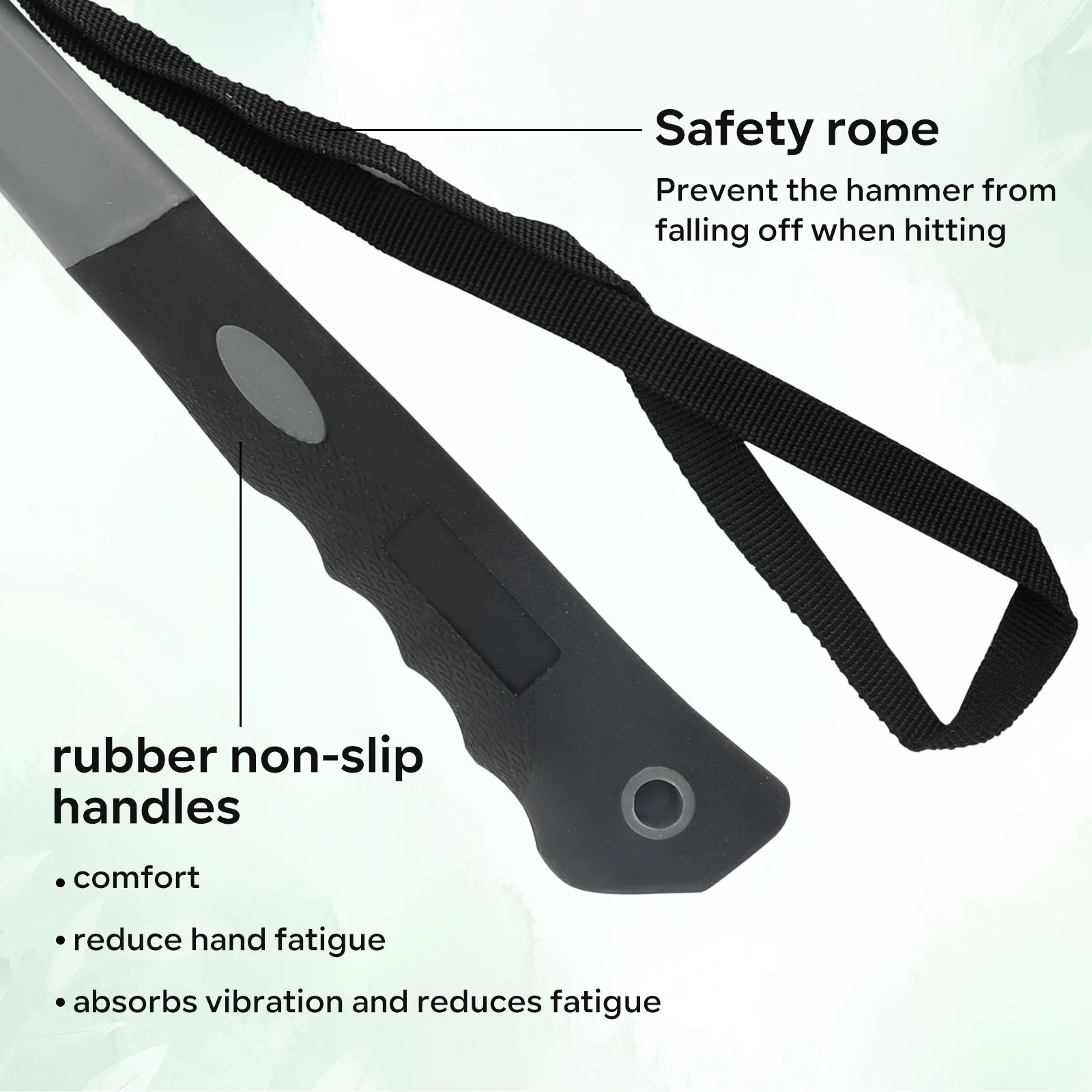 3. Estabiliza la cabeza del martillo: la cabeza del martillo adopta el proceso de pegado, que tiene una bisagra firme y no se cae fácilmente, lo que mejora la seguridad de uso.