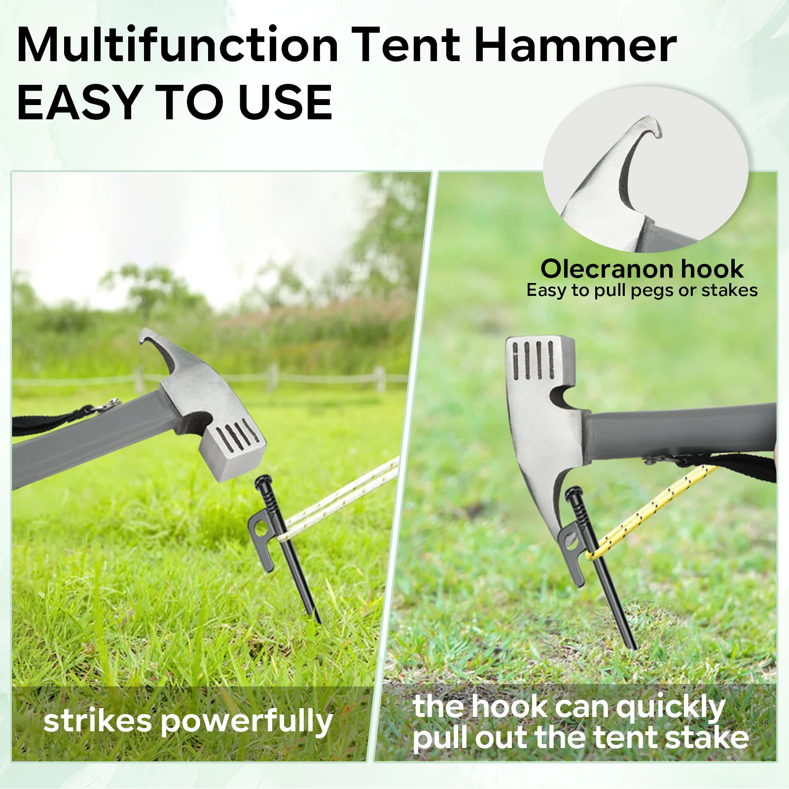 SANLIKE gris 30cm martillo multifuncional tienda de campaña extractor de clavos portátil martillo ultraligero tienda herramienta accesorios de equipo al aire libre