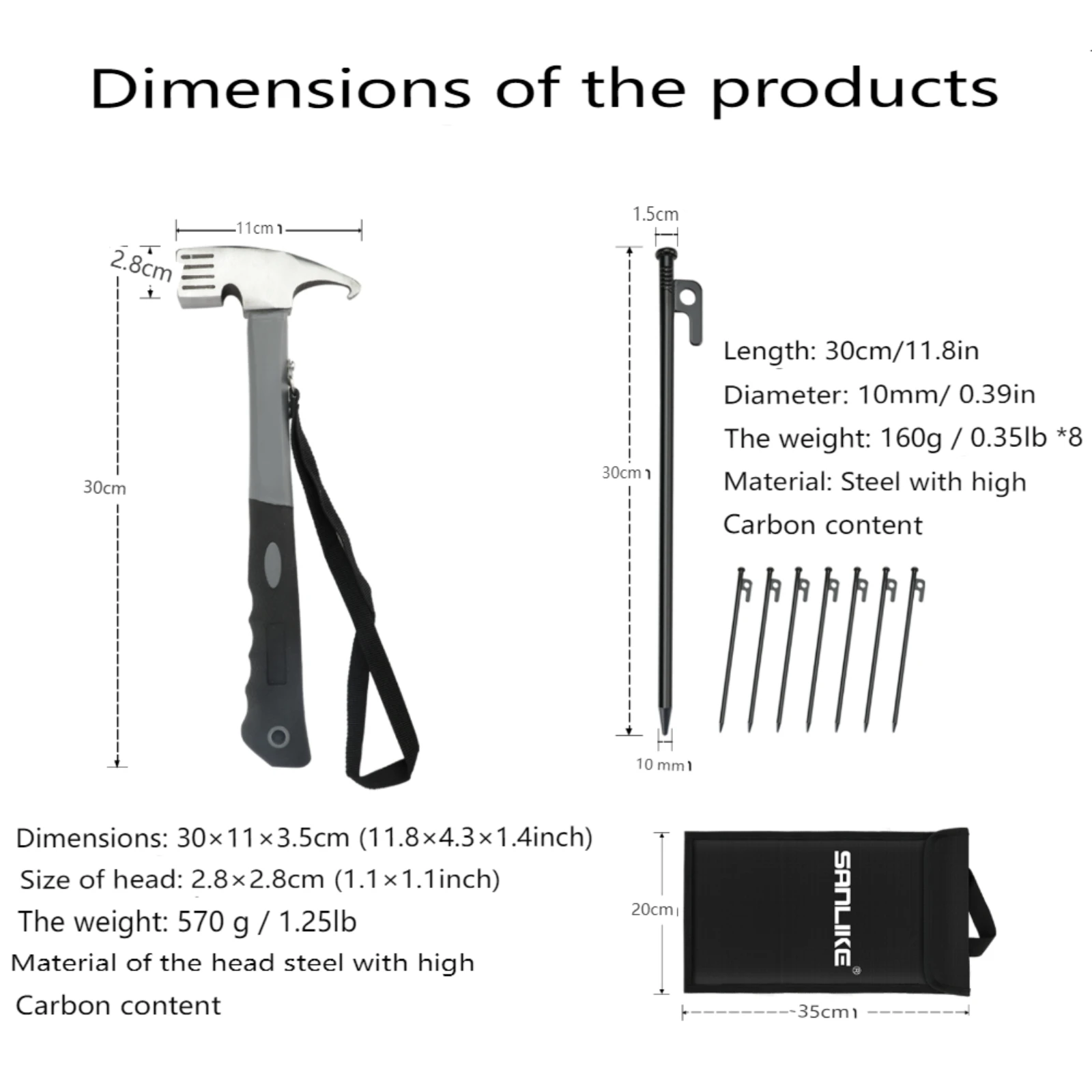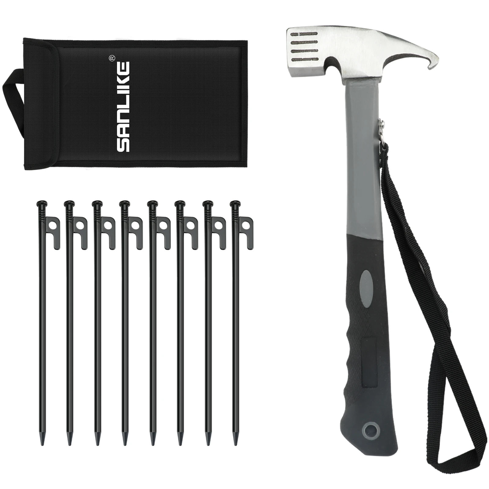 SANLIKE estacas de tienda de alta resistencia martillo multifunción acero con alto contenido de carbono recubierto de negro con bolsa de almacenamiento para acampar senderismo al aire libre