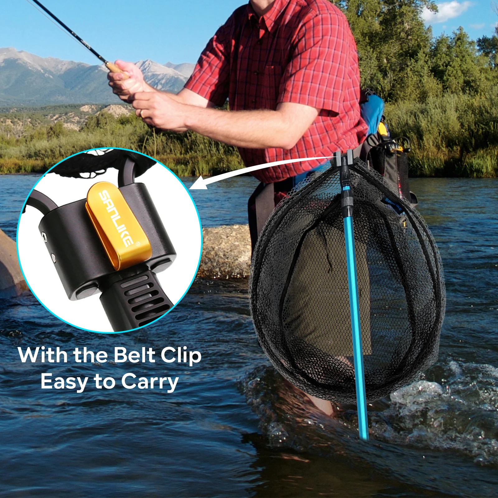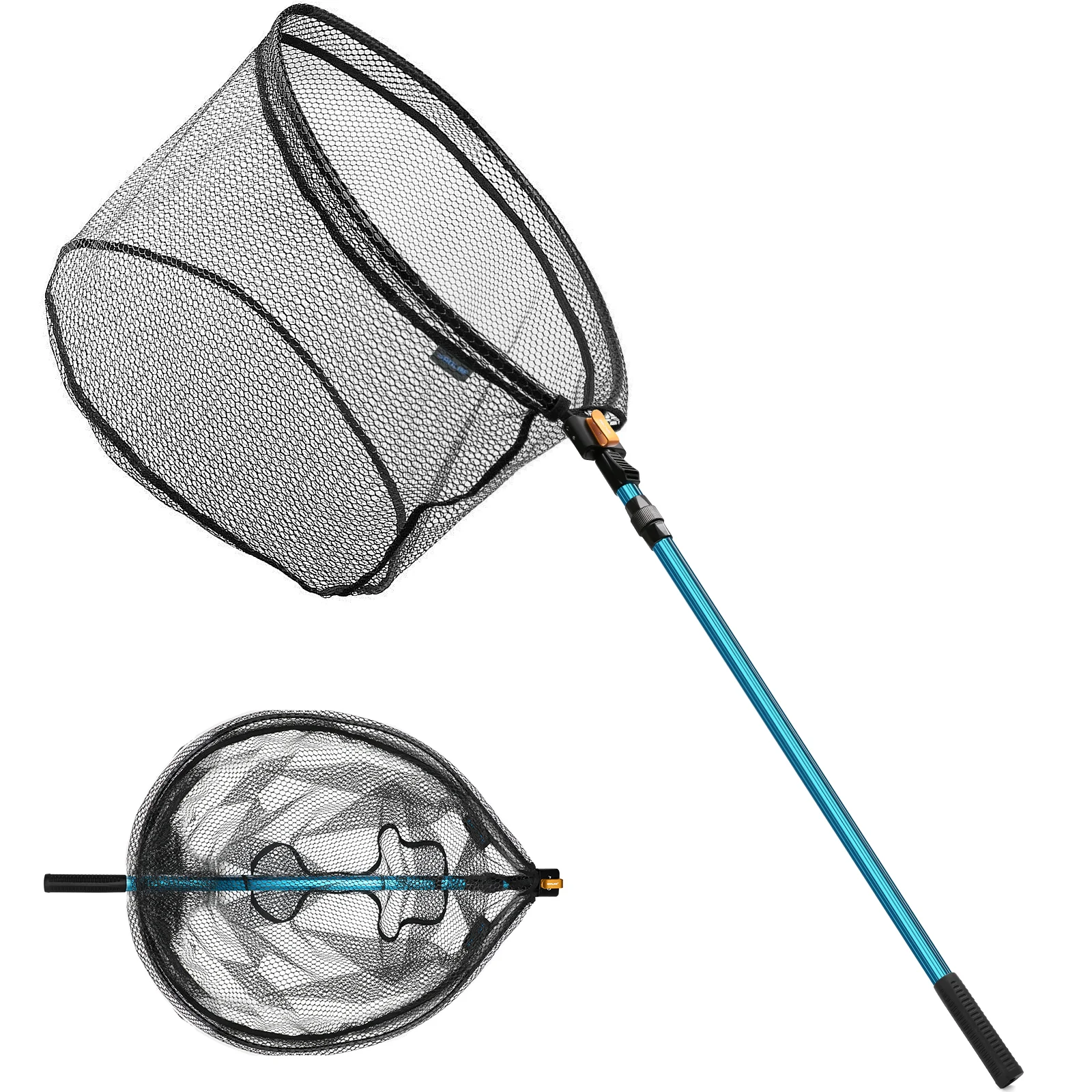 SANLIKE, Red de aterrizaje de pesca plegable de 1,8/2,1 m, red retráctil con mango de nailon recubierto de goma para aparejos de carpa, captura y liberación