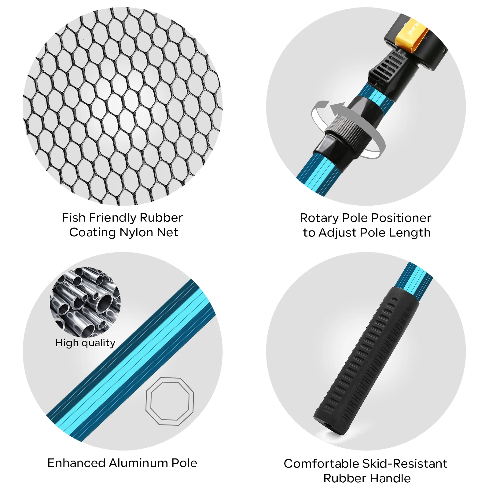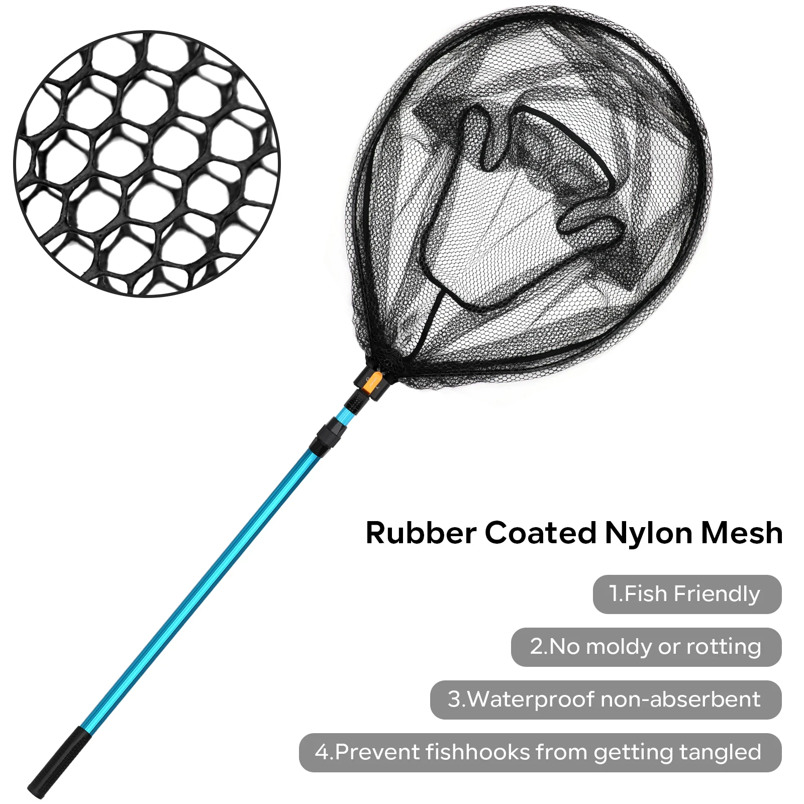 3. Material de alta calidad: el material de la varilla de aluminio de alta calidad es fuerte y duradero, la red de pesca está hecha de nailon recubierto de goma, que es impermeable y no absorbente, y puede ser ampliamente utilizado en agua dulce, pesca con mosca, etc.