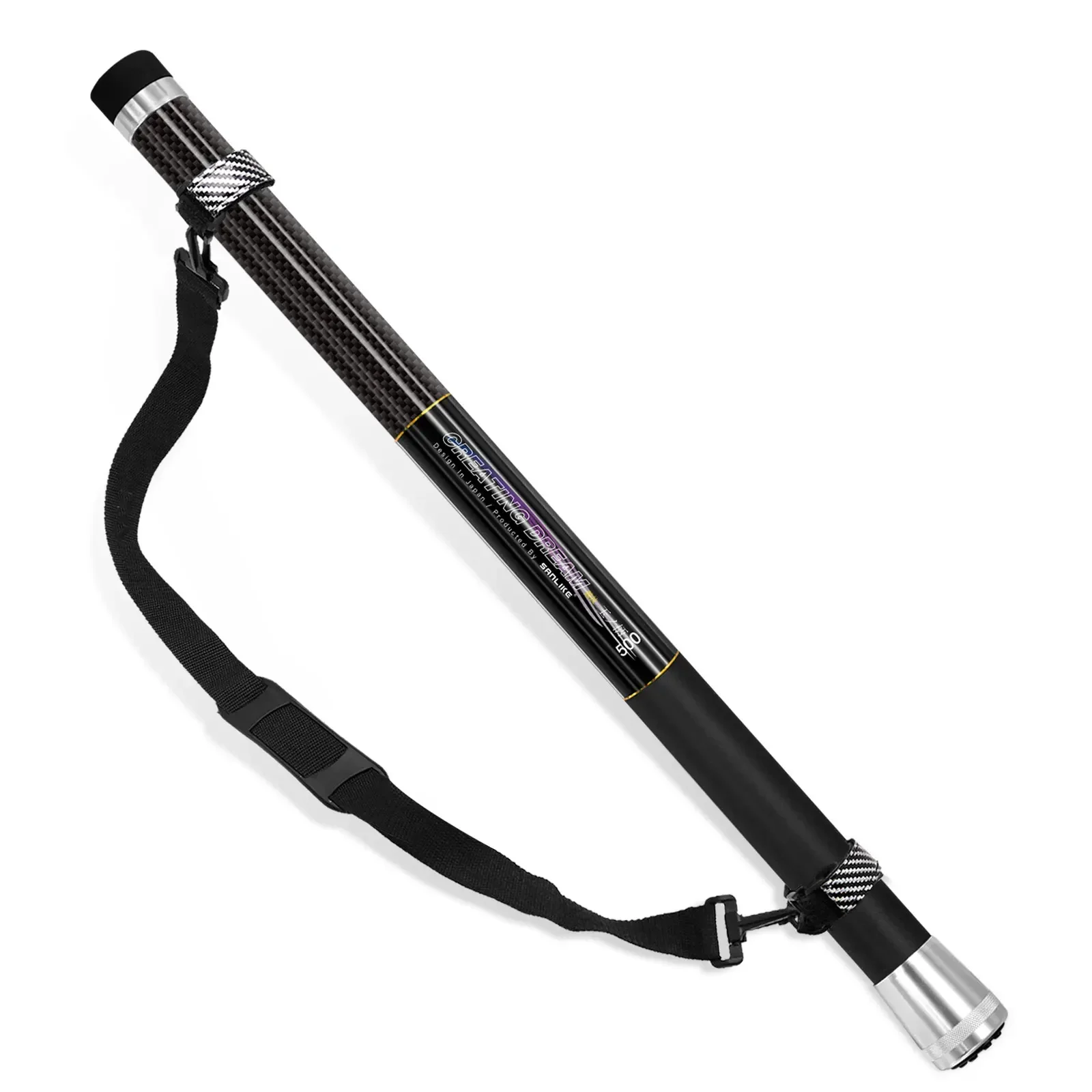 5.Equipada con una correa para el hombro, la varilla se puede retraer de manera flexible hasta una longitud de 65.5 cm, una característica que lo hace extremadamente fácil de transportar, incluso cuando se pesca en ríos activos con corrientes fuertes o a lo largo de bancos ásperos y rocosos, lo que le permite viajar con facilidad y disfrutar de su pesca.