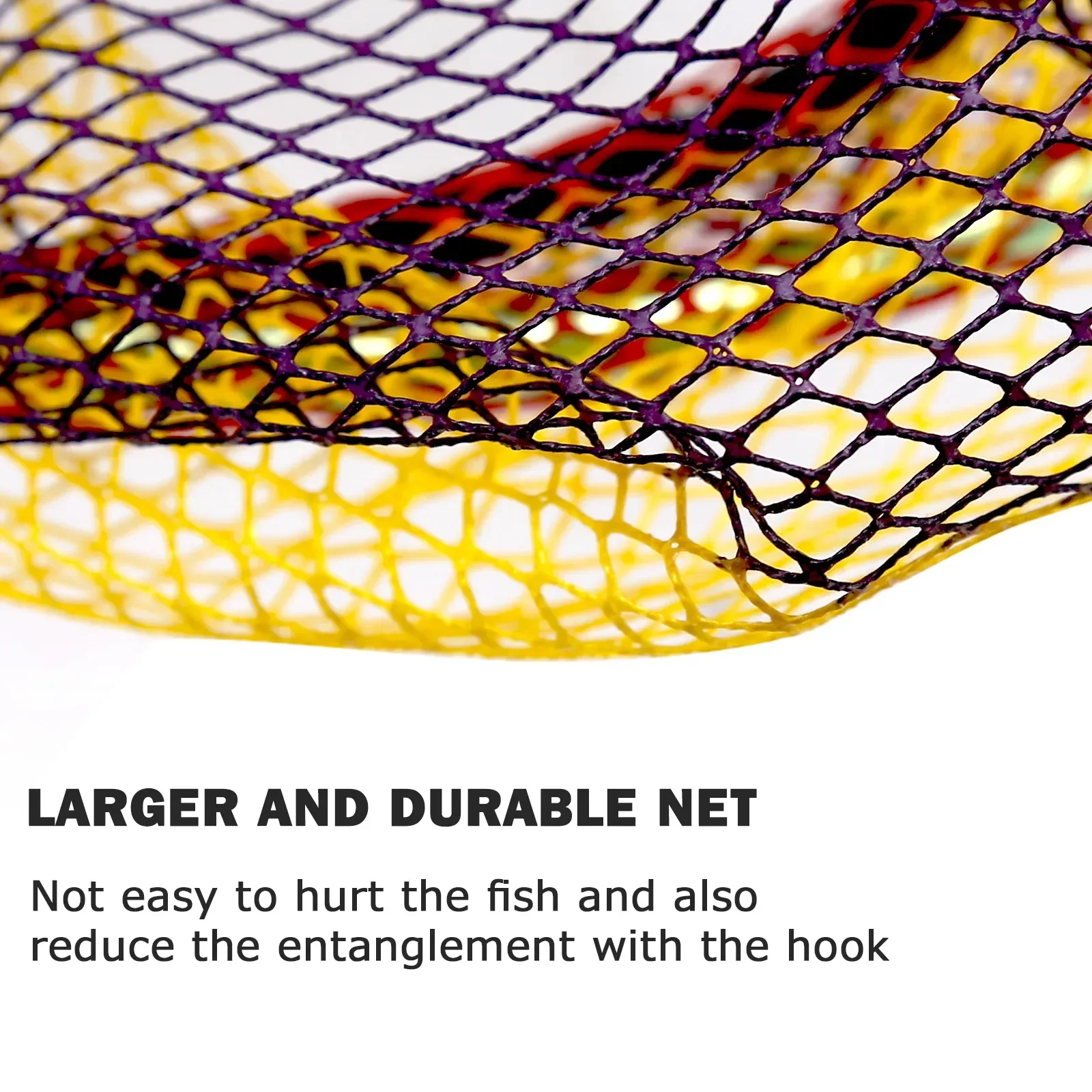 3. Red recubierta de goma: malla recubierta de goma de nailon, antiagua, antiolor, suave y no dañina para los peces, el diseño del anzuelo sin enredos es fácil de limpiar, soporta una carga fuerte, los peces pesados se pueden capturar de manera constante.