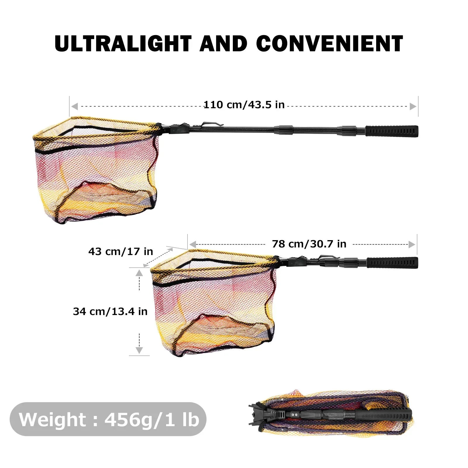 2. Tamaño de pesca científico: 43 cm de ancho, 34 cm de profundidad, diseño engrosado y profundo, ampliando el rango de pesca, peces grandes fácilmente en la red.