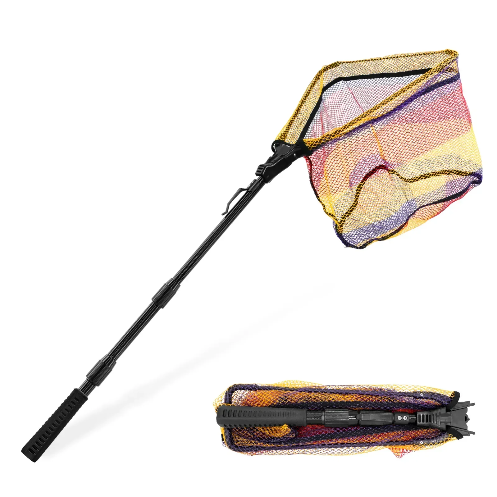 SANLIKE Red de aterrizaje plegable portátil con poste de fibra de vidrio telescópico de 1,1 m Red de captura y liberación recubierta de goma para pesca en kayak