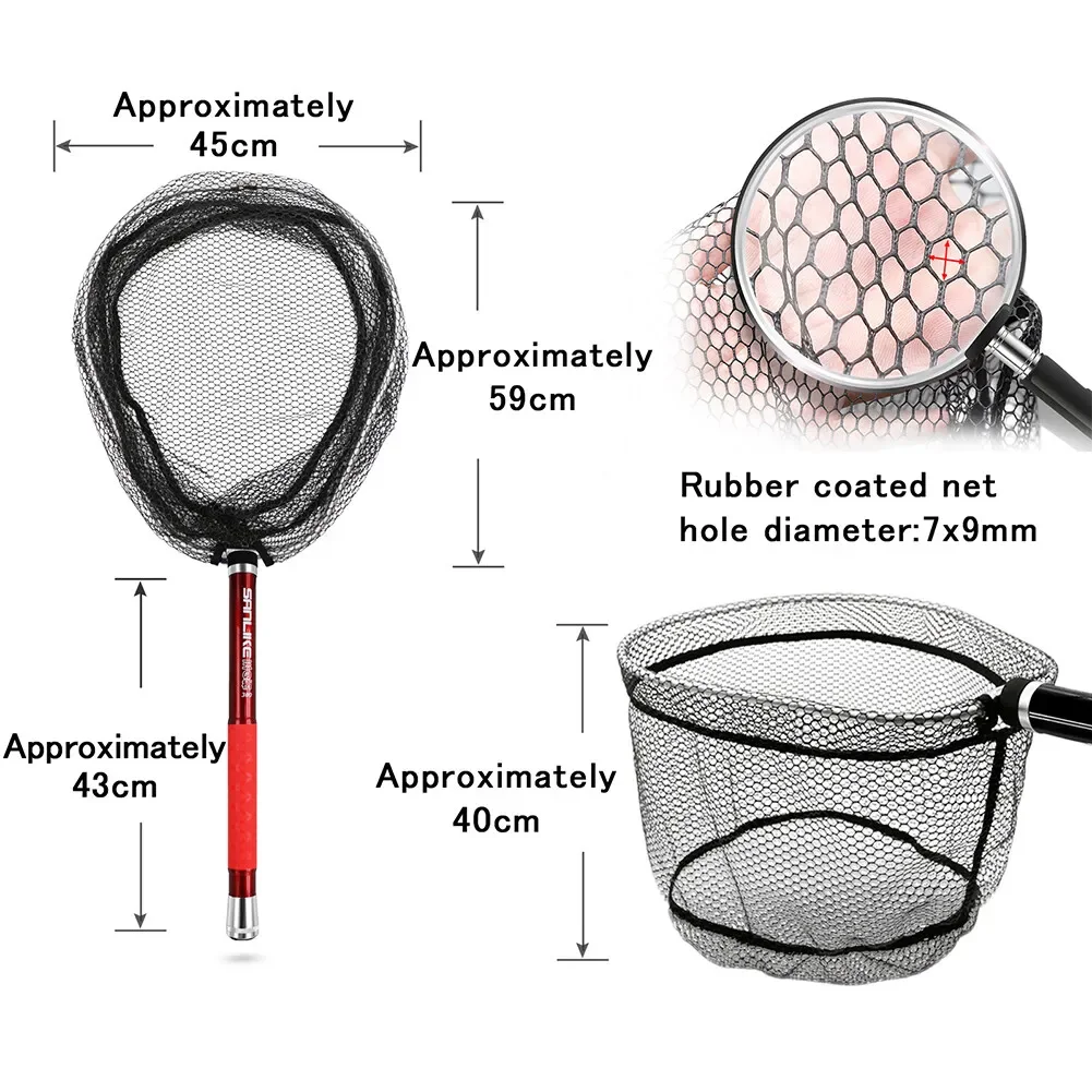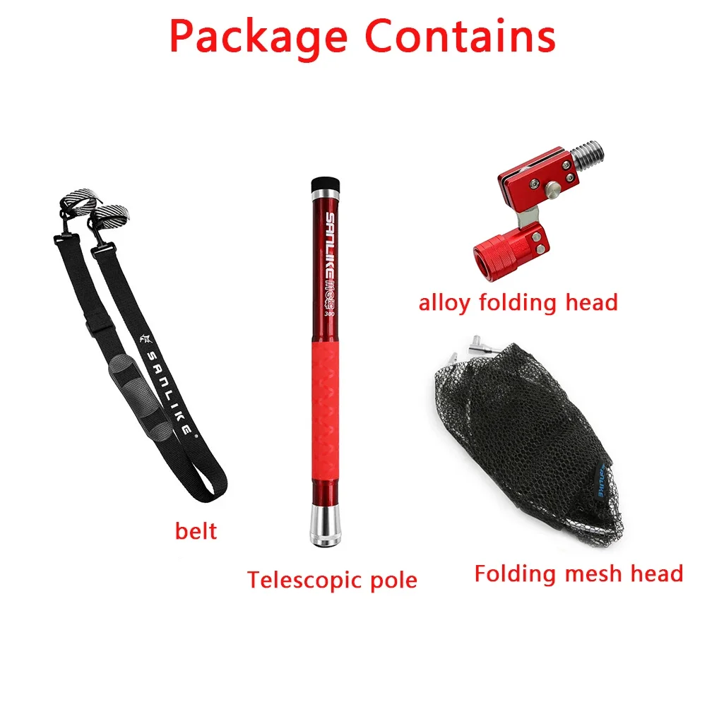 SANLIKE 3M red de pesca de fibra de carbono portátil retráctil plegable mango de aterrizaje PE Red con adaptador rojo herramientas de pesca