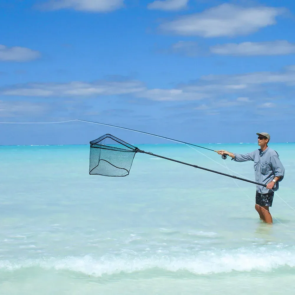 SANLIKE, mango triangular negro, red de pesca, poste plegable retráctil, aparejos de pesca, accesorios de captura de carpa
