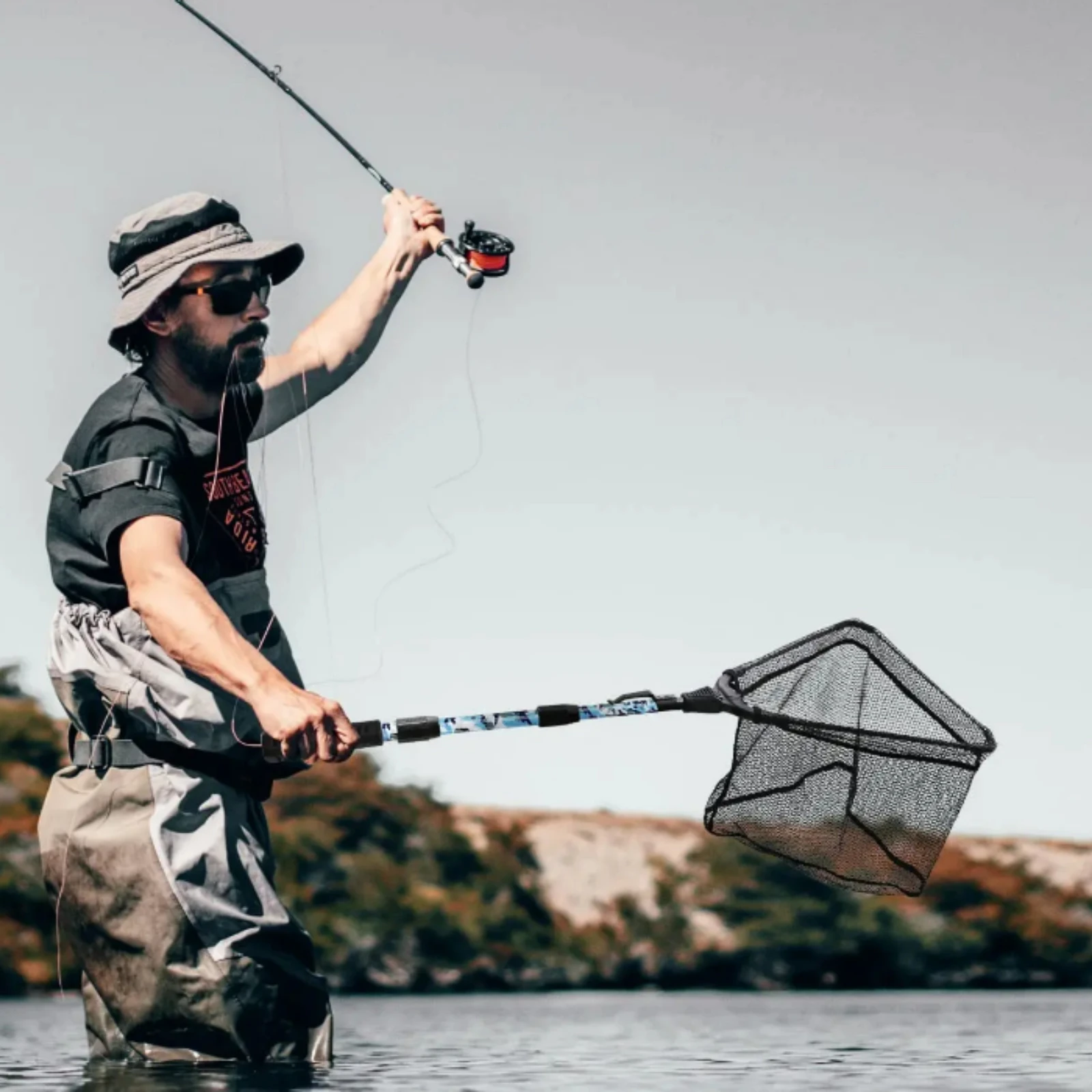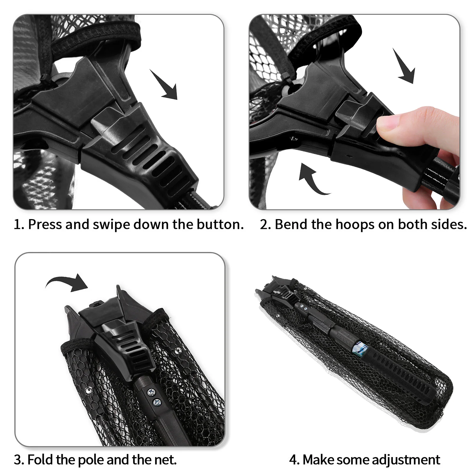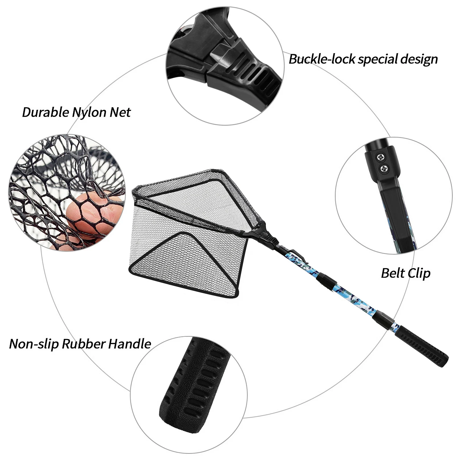 3. Red plegable, se abre y se cierra muy fácilmente, ideal para peces ligeros; asa telescópica, fácil de bloquear y liberar. Y se puede plegar sin ocupar demasiado espacio.